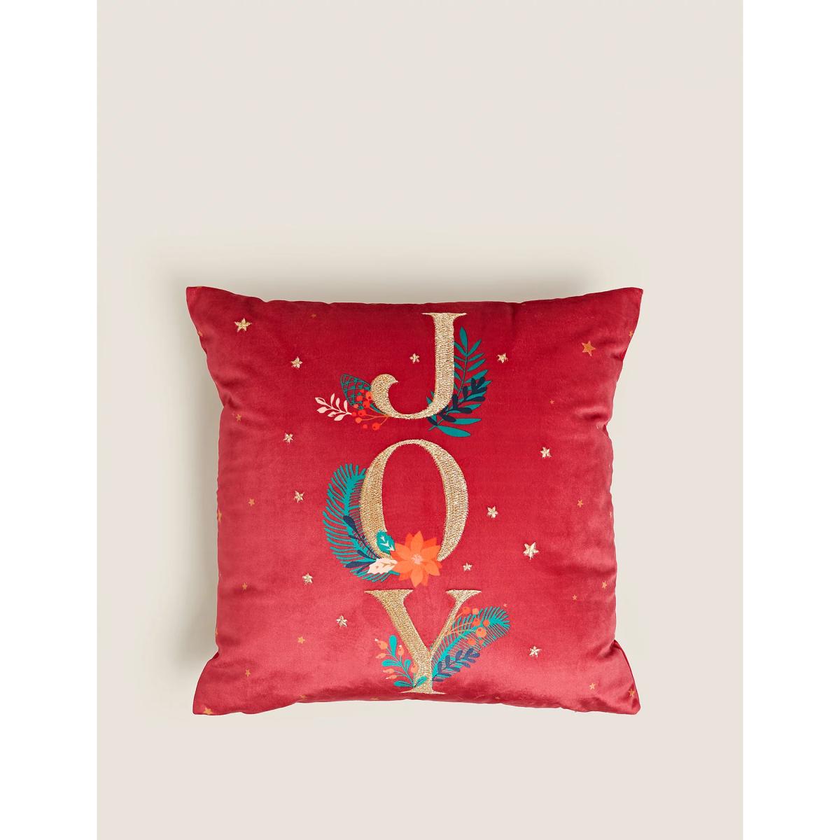 M&S Velvet Joy Slogan Embroidered Cushion - Red Mix, Red Mix