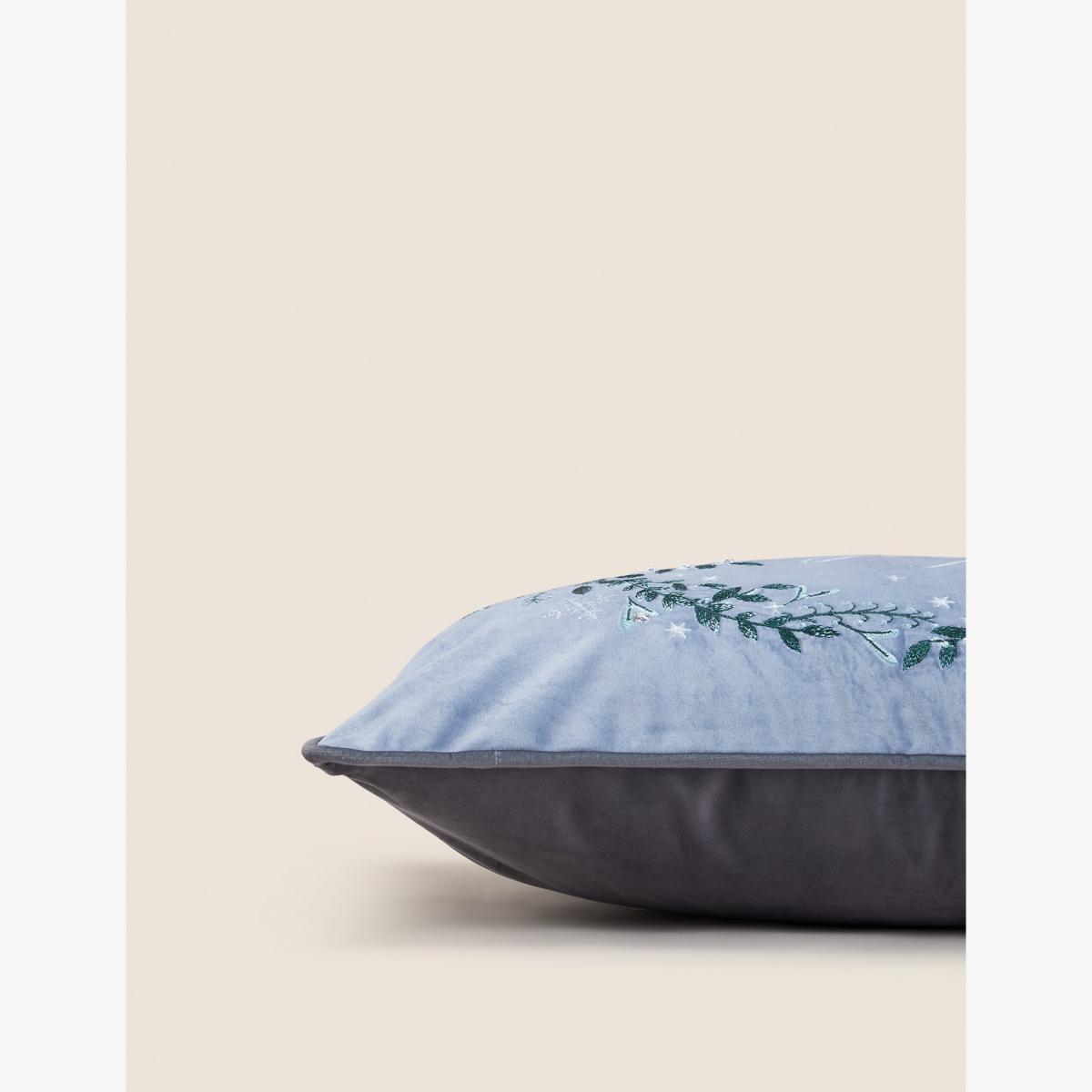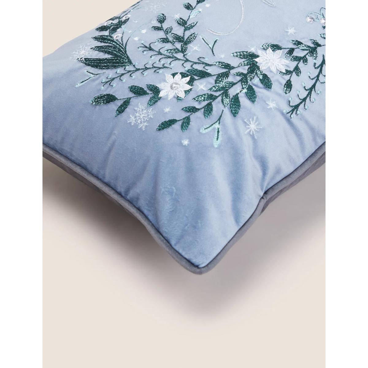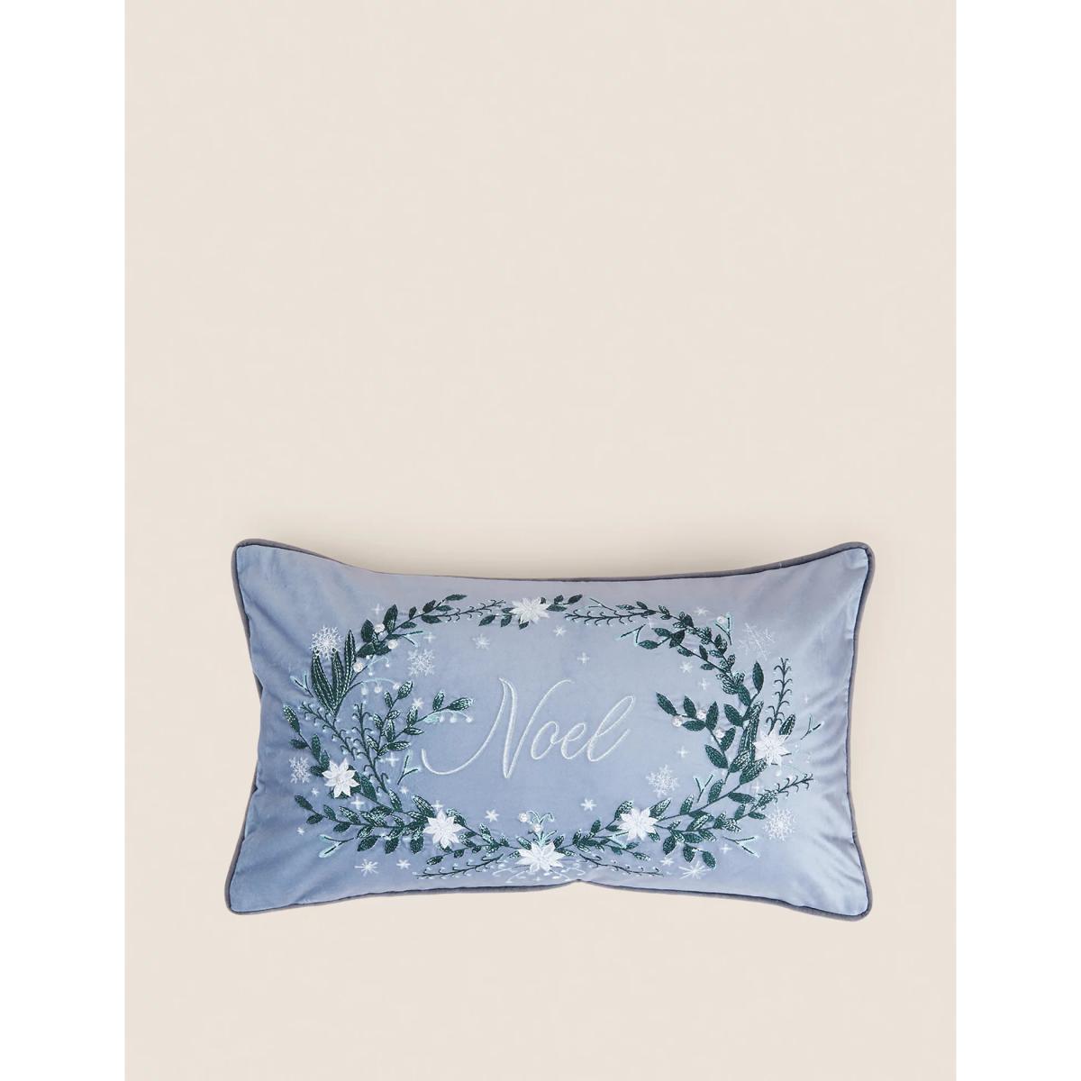 Featuring intricate embroidery, this velvet bolster cushion will make a beautiful addition to your seasonal space. It features a 'Noel' slogan surrounded by a festive selection of flowers and snowflakes.