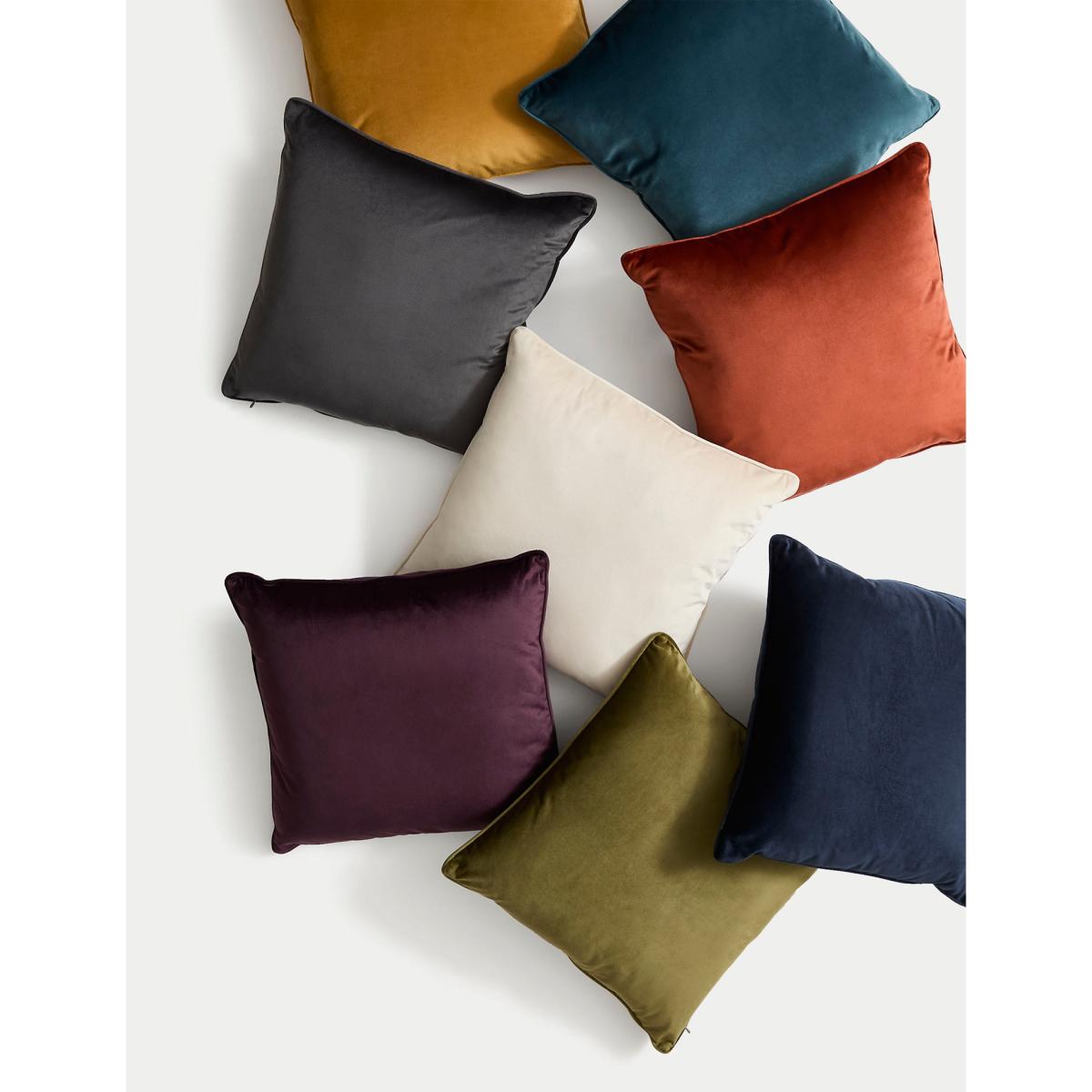 M&S Velvet Piped Cushion - Purple, Purple,Rust,Ecru,Olive,Navy,Charcoal,Ochre,Blue