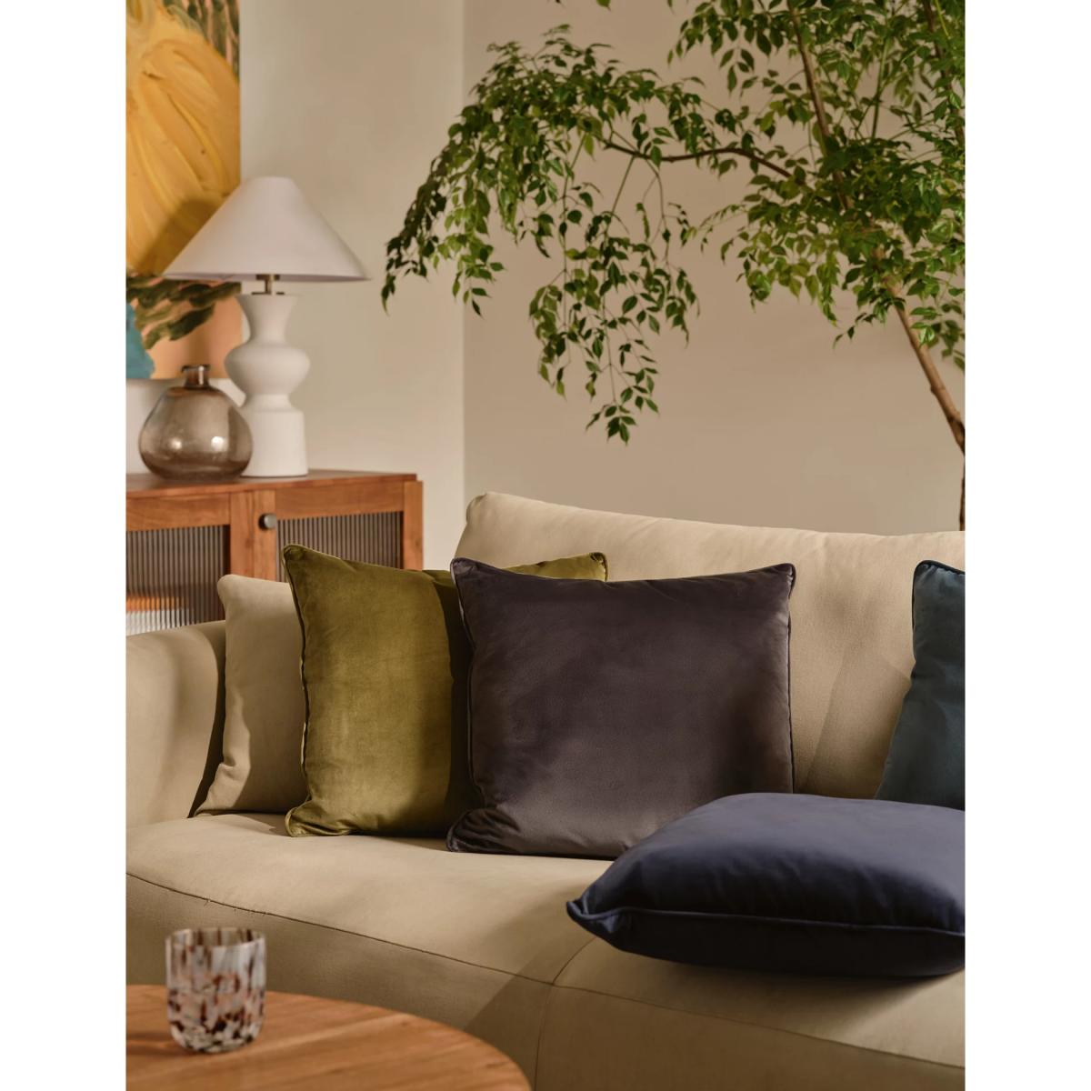 This velvet piped cushion is a versatile choice for adding texture and colour to a variety of interiors. I love its plush finish and classic piping detail, which lend a subtle touch of sophistication. It’s perfect for layering on a sofa or bed in neutrals or more colourful schemes, as it comes in a range of rich hues like purple, navy, and ochre, making it easy to coordinate with existing decor. For a contemporary look, pair it with sleek furniture and minimal accessories, or for a cozier vibe, mix it with patterned or textured cushions. Practical styling tips include placing it in the centre of a sofa with complementary cushions for a polished finish, or using it to introduce a pop of colour in darker schemes. Its velvety feel also makes it a tactile addition that invites you to sit back and unwind.