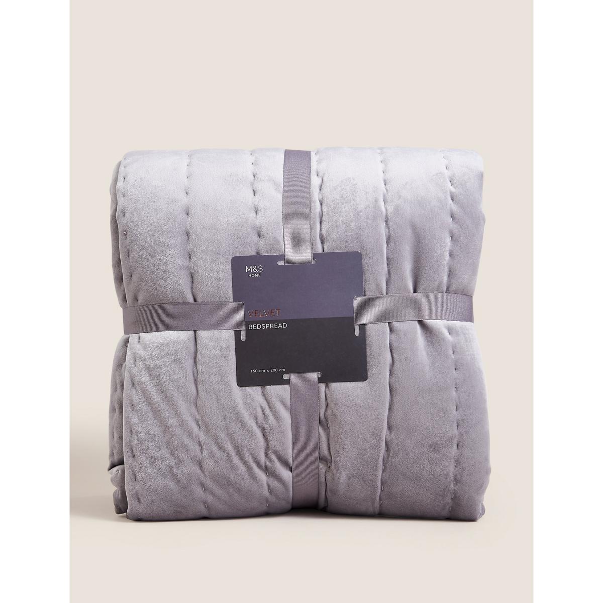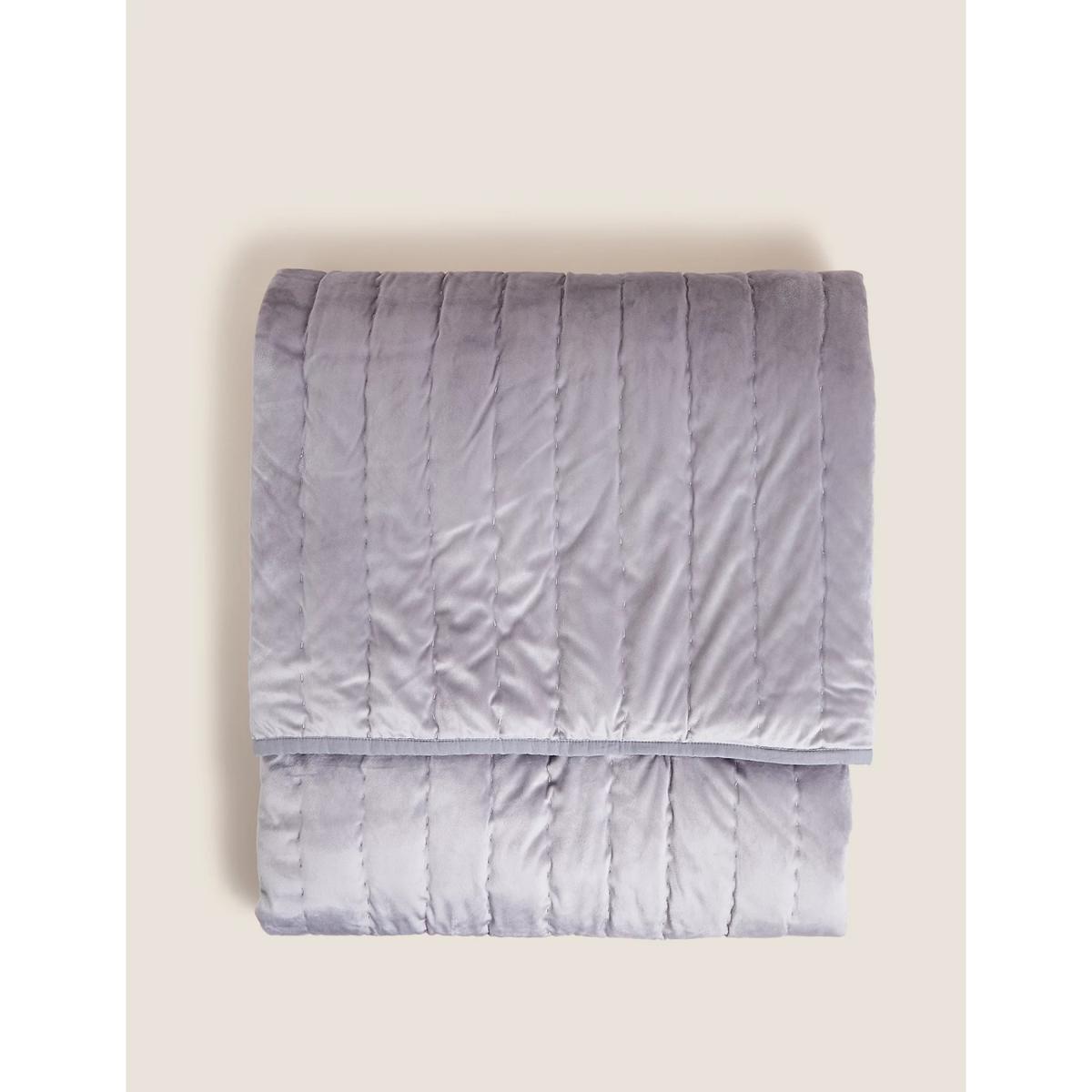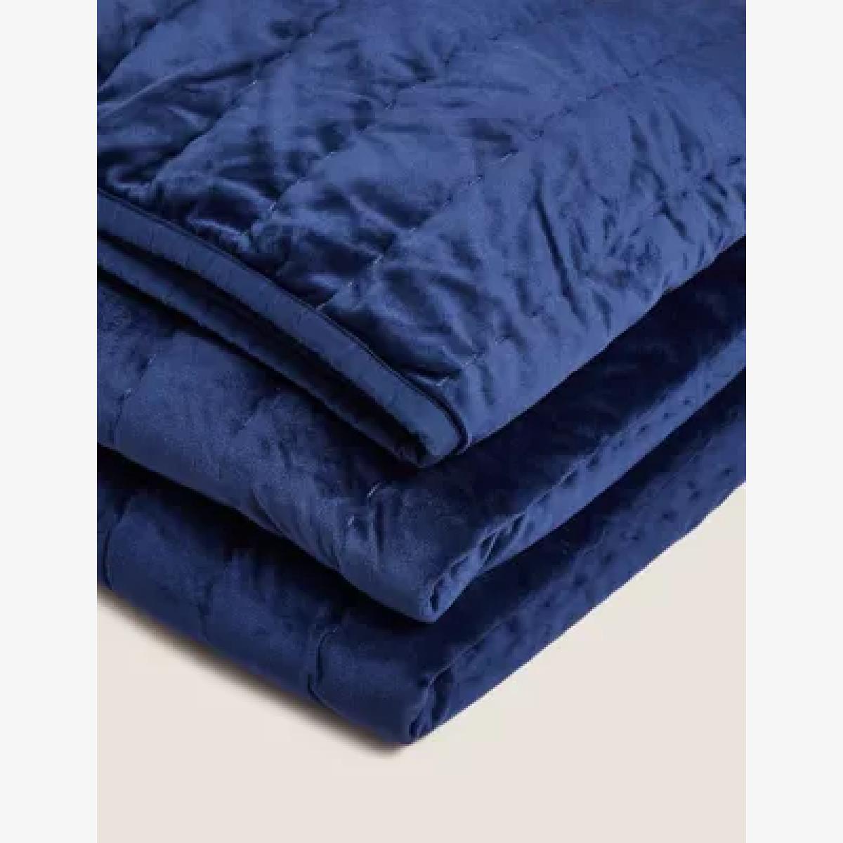 M&S Velvet Quilted Bedspread - XL - Navy, Navy,Grey