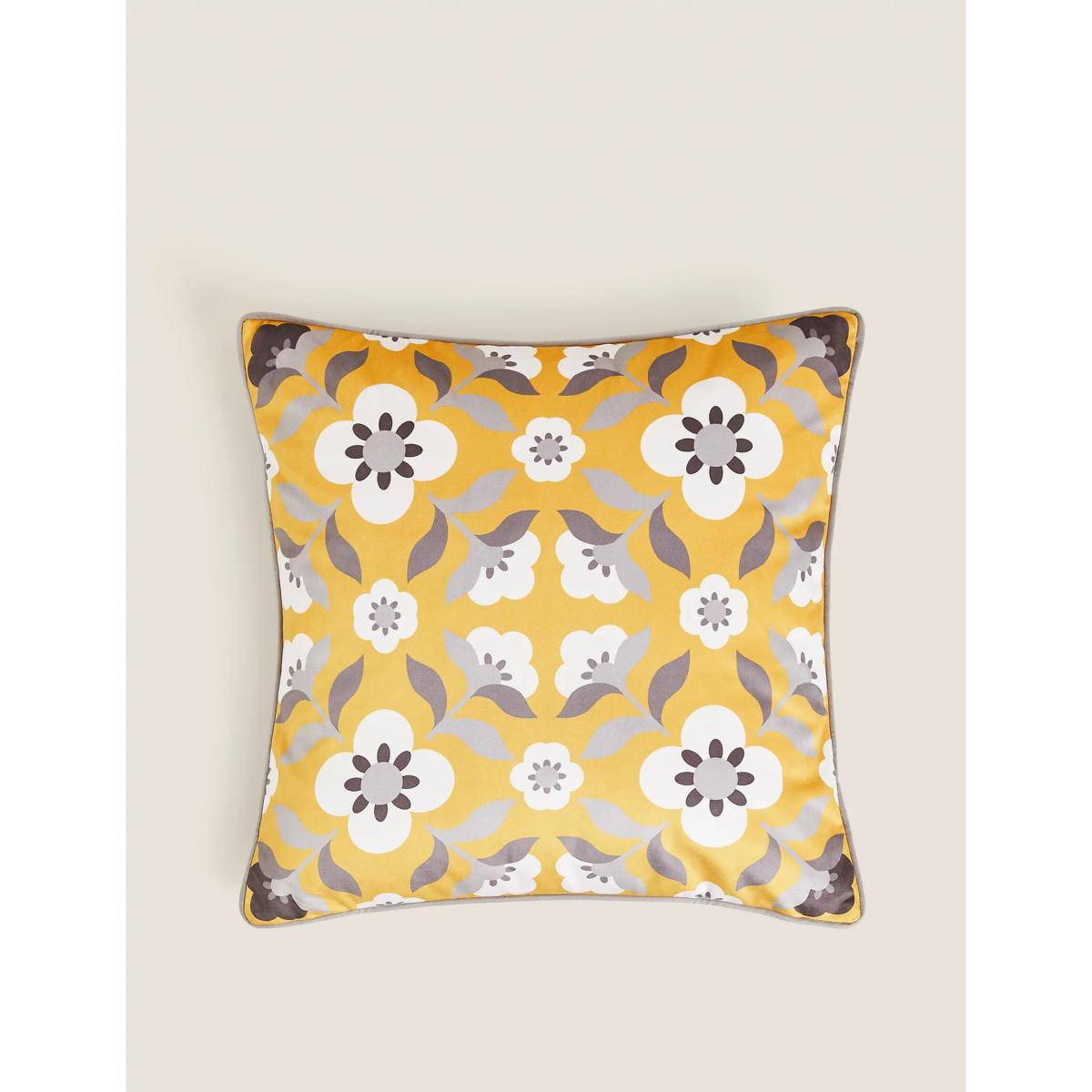 M&S Velvet Retro Floral Print Cushion - Ochre, Ochre