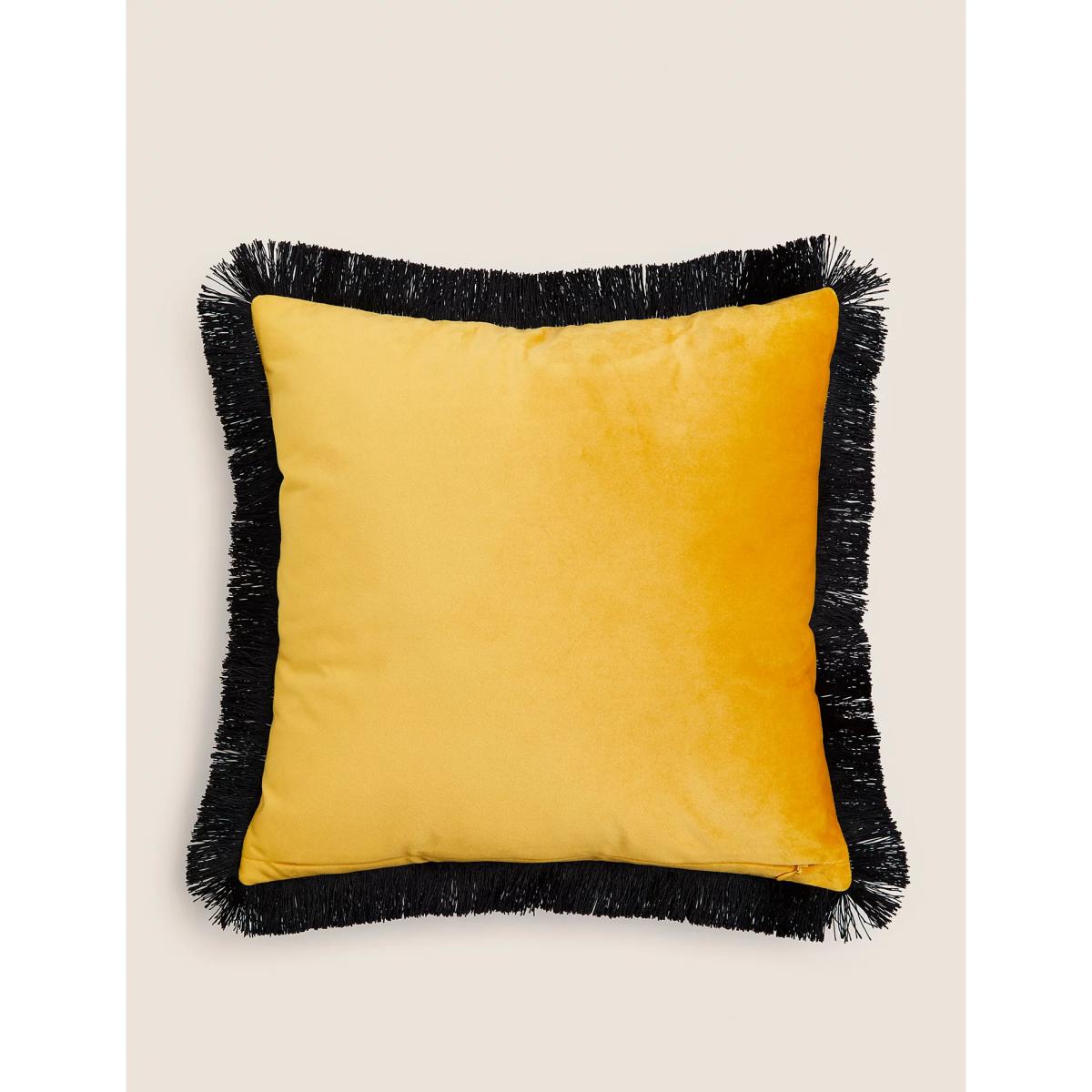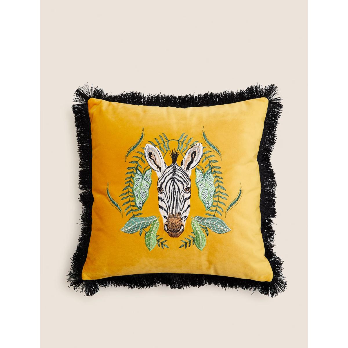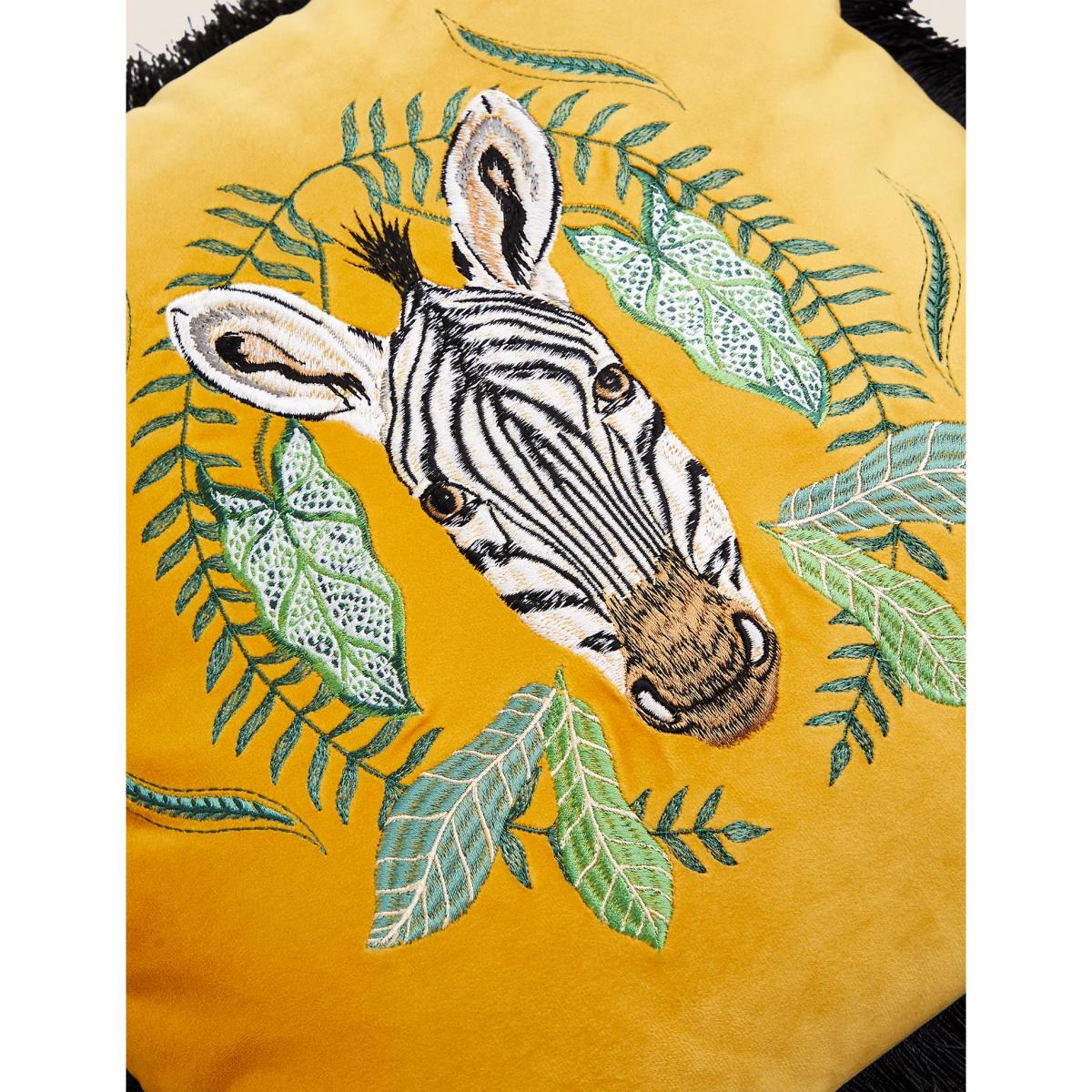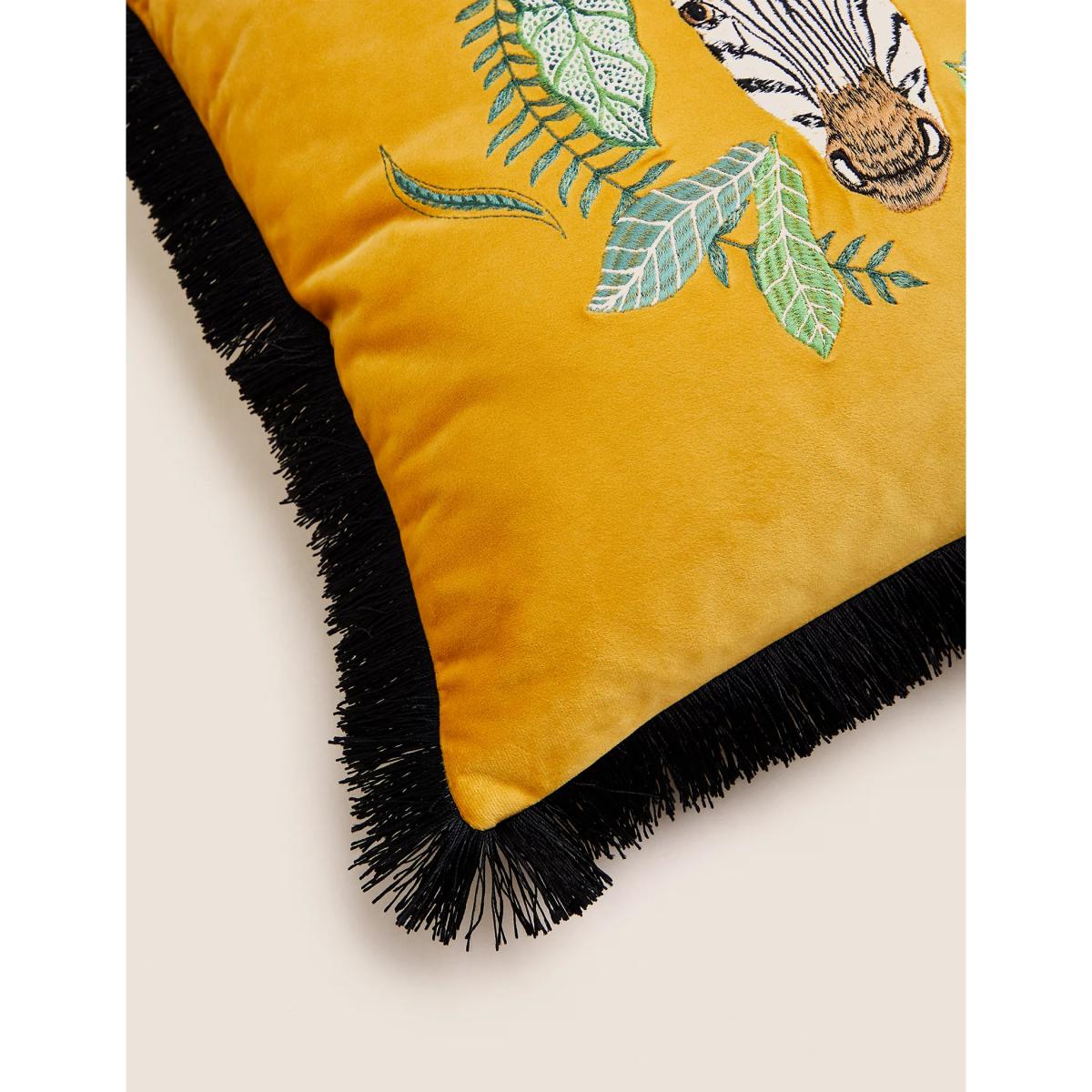 M&S Velvet Zebra Embroidered Fringe Cushion - Ochre, Ochre