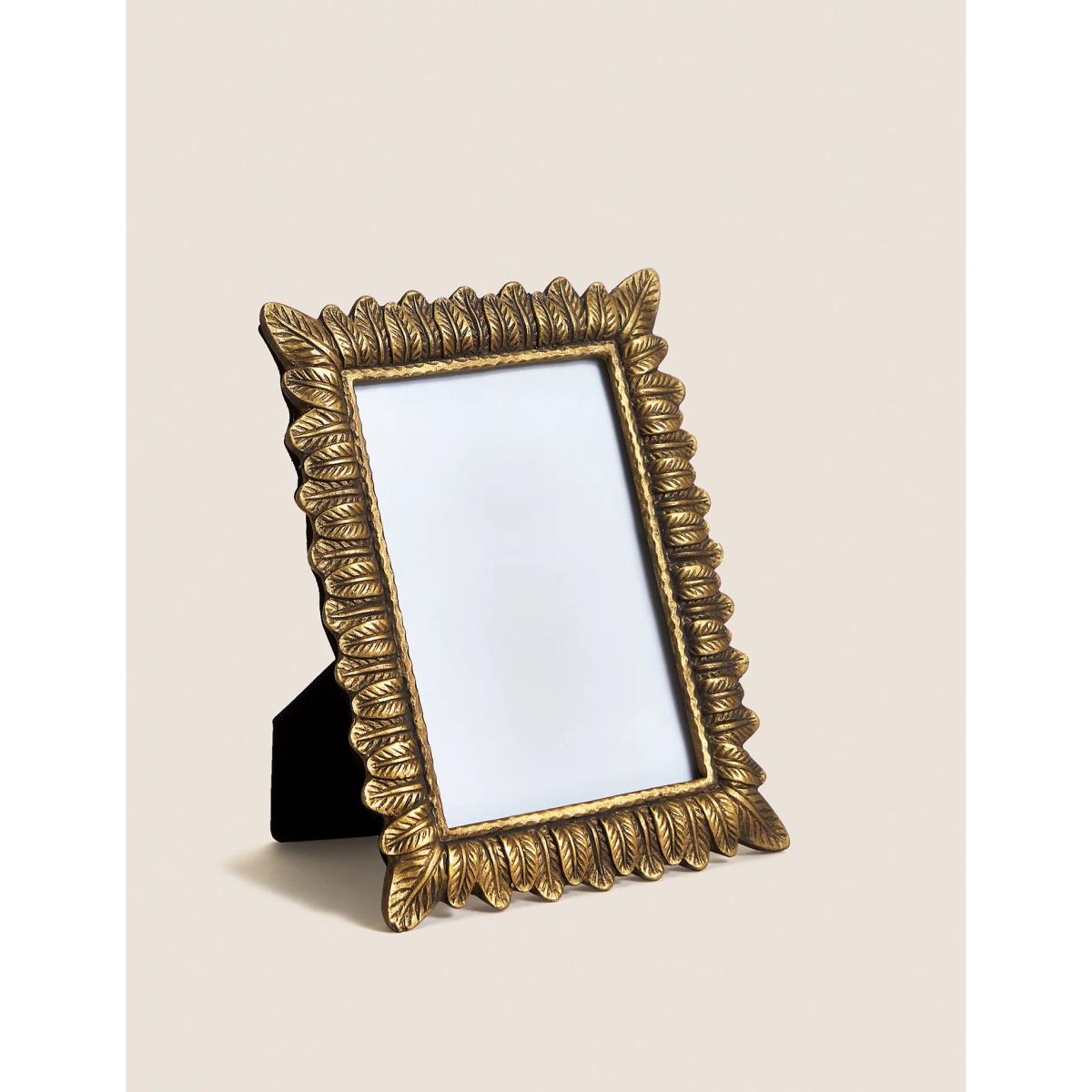 Add a touch of vintage style to your home with this 5x7 photo frame. With an antique gold finish, it's embellished with leaves to give a timeless feel. It can be displayed free-standing, in portrait or landscape orientation.