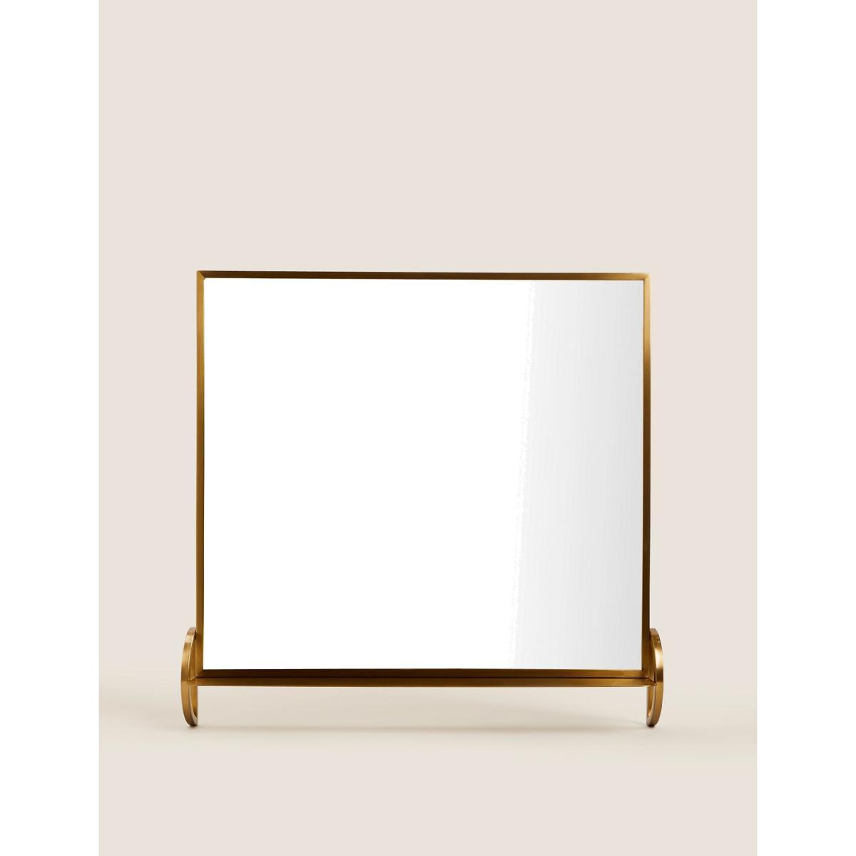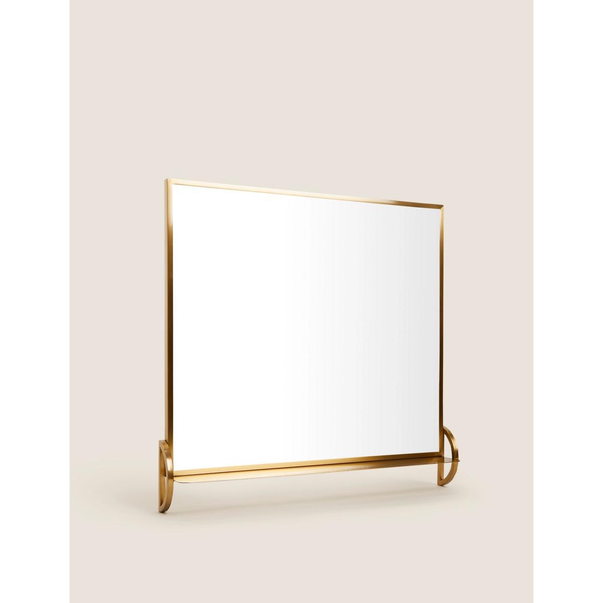 Bring a touch of glamour to your interior with this gold-framed square wall mirror. It's fitted with a golden shelf at the bottom for all your essentials and features circular shelf arms for a stylish finish.