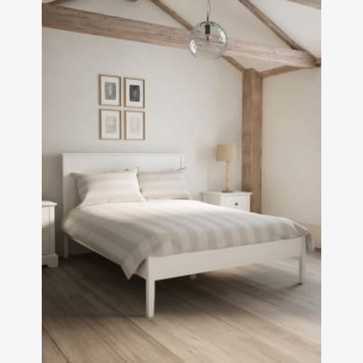 The M&S Walton bed in white offers a versatile and timeless focal point perfect for a variety of interiors. Its clean lines and minimalist design make it adaptable, whether you’re styling a contemporary, Scandi, or classic space. I love pairing this bed with soft neutral linens and textured throws for a cosy yet polished look. It works particularly well in bedrooms with light colour palettes and natural wood accents, as shown in the image, but can easily be dressed up with bold cushions or colourful bedding to add personality. Practical styling tip: use statement bedside lamps or layered lighting to create a warm, inviting atmosphere, and keep decor minimal around the frame to maintain its sleek, uncluttered vibe.