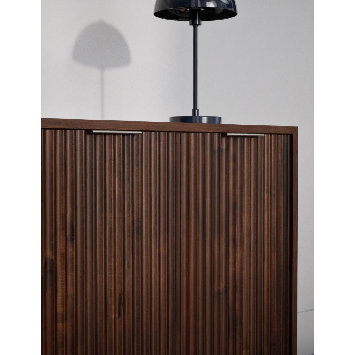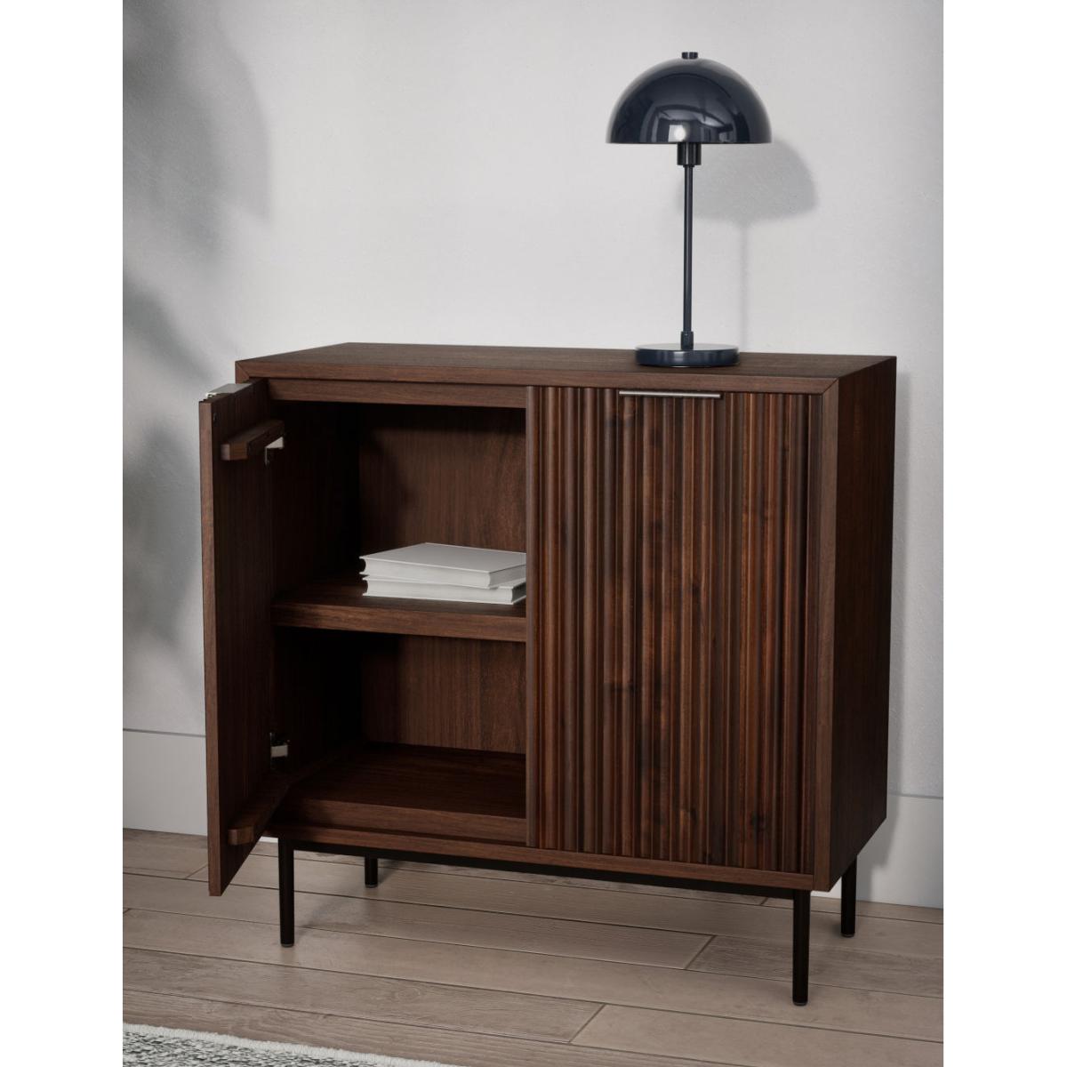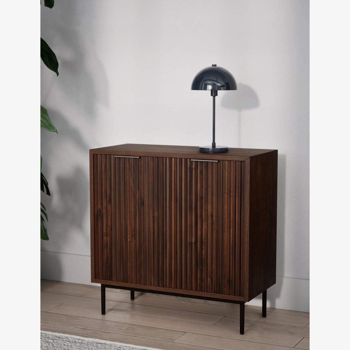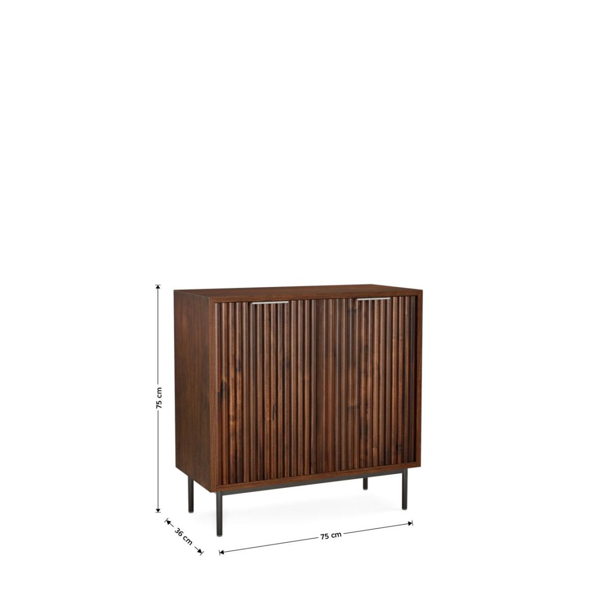 With its clean lines and mid-century aesthetic, this compact Wharf sideboard exudes quiet elegance. Lustrous acacia veneer brings subtle sheen and colour variation to the top, sides and front. Fluted detail adds texture to the two soft-close doors, while simple metal handles ensure a crisp finish. The look is completed with slender, rounded metal legs. We’re so confident our furniture is built to last, our industry-leading guarantee covers any manufacturing failure on all furniture. That’s our promise, and why our furniture comes with a 10-year guarantee that you can trust. Excludes: outdoor furniture and any issues that are a result of normal wear and tear, improper care or accidental damage.