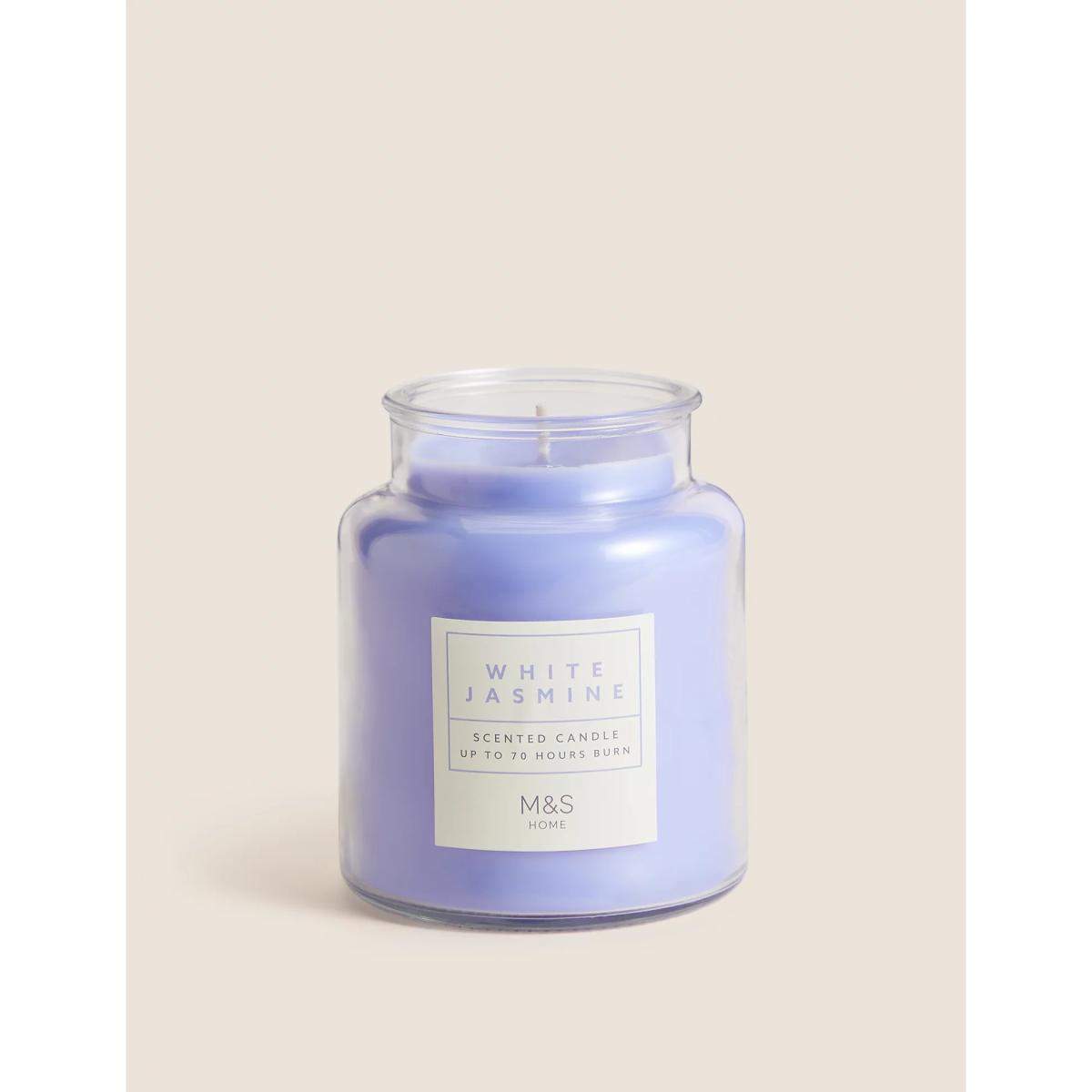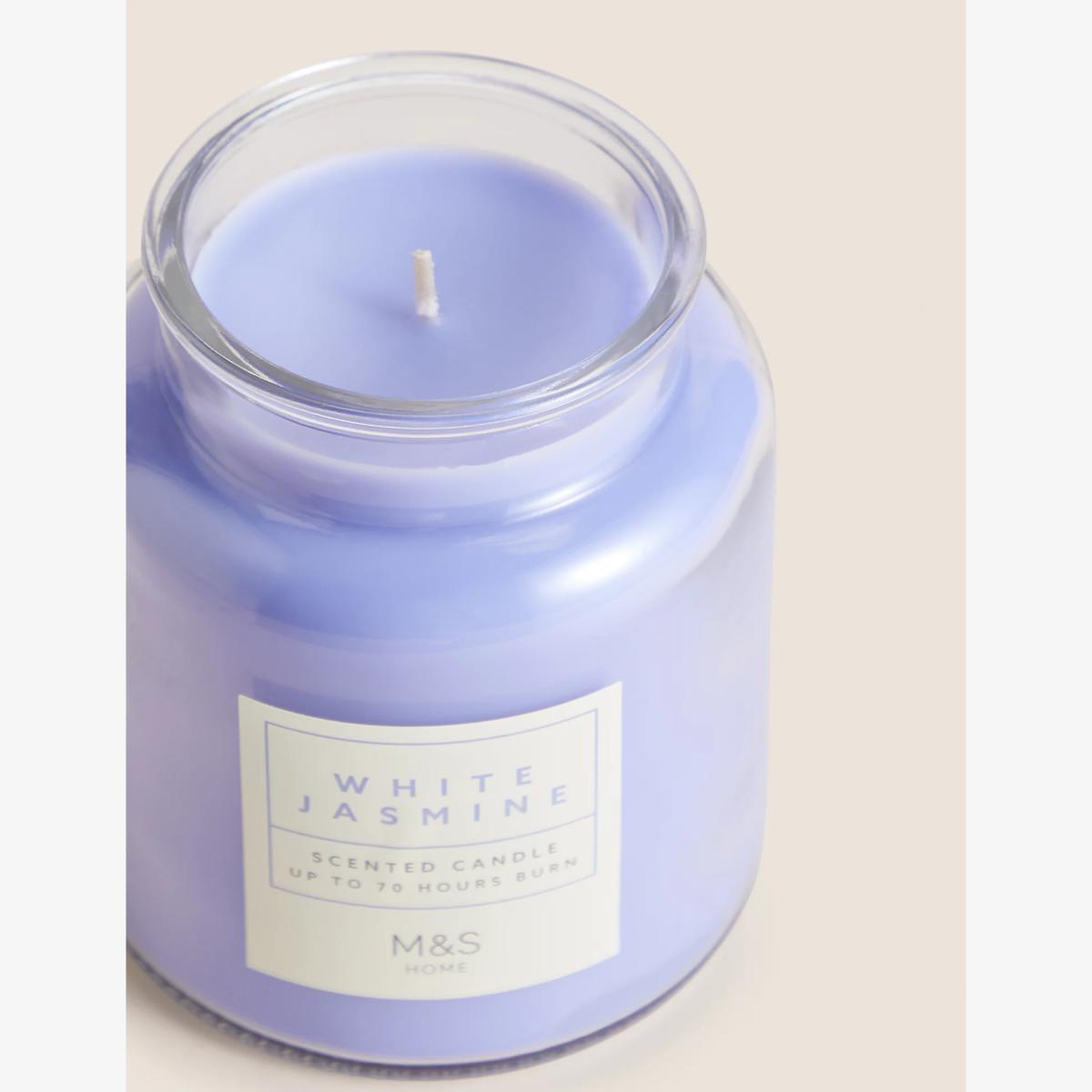 Fill your space with heady florals when you light our white jasmine scented candle. It comes in an attractive glass jar, burns for up to 70 hours and produces fragrant notes of rose, lily of the valley and freesia. This fragrance is part of the Floral family of fragrances. Floral scents are feminine, soft and uplifting and will often include notes such as jasmine, mimosa, rose, peony and tuberose amongst others.