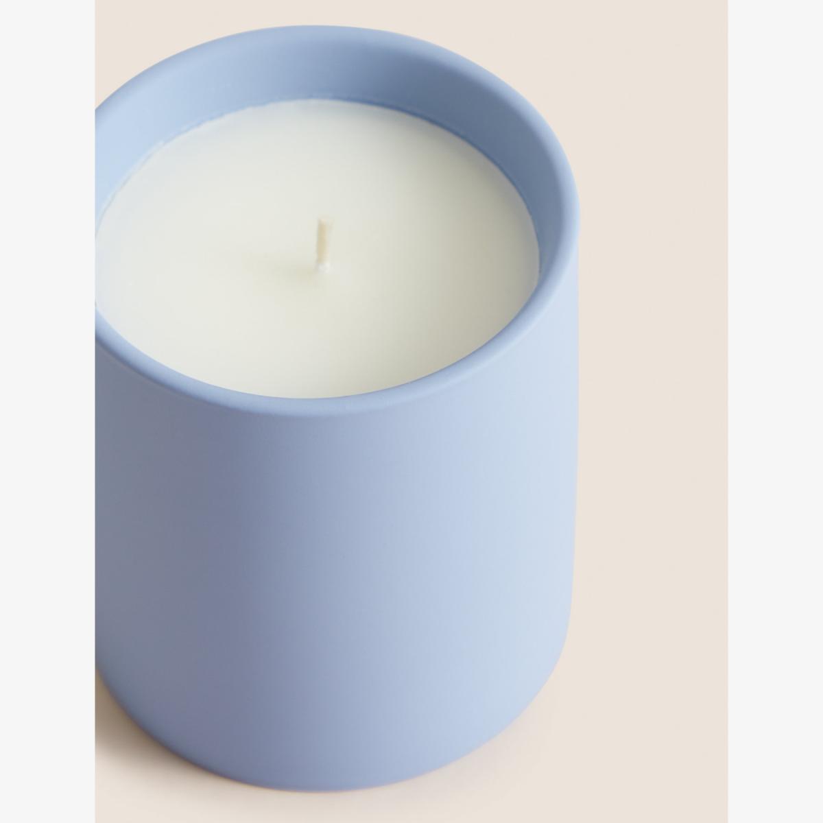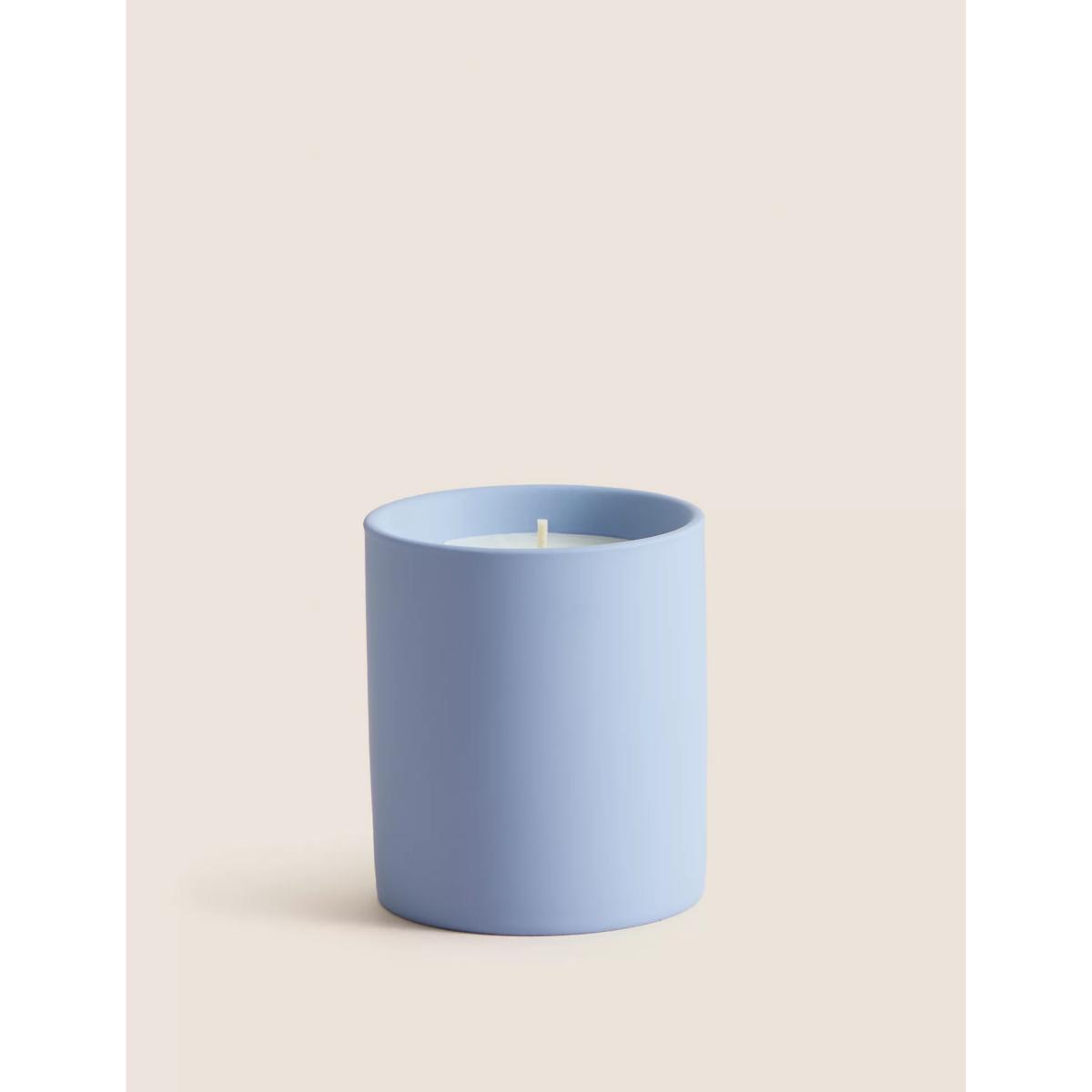 I love this candle for its clean, fresh aesthetic and calming scent. The purple hue makes it a versatile piece that works particularly well in contemporary or minimalist interiors, adding a subtle colour pop without overpowering the space. It’s great for living rooms, bedrooms, or bathrooms where a relaxing atmosphere is desired. For styling, consider placing it on a neutral tray or alongside natural materials like wood or linen to enhance its soothing vibe. Pair it with other soft decor elements to create a cohesive look that invites peace and tranquility, especially in spaces designed for unwinding.