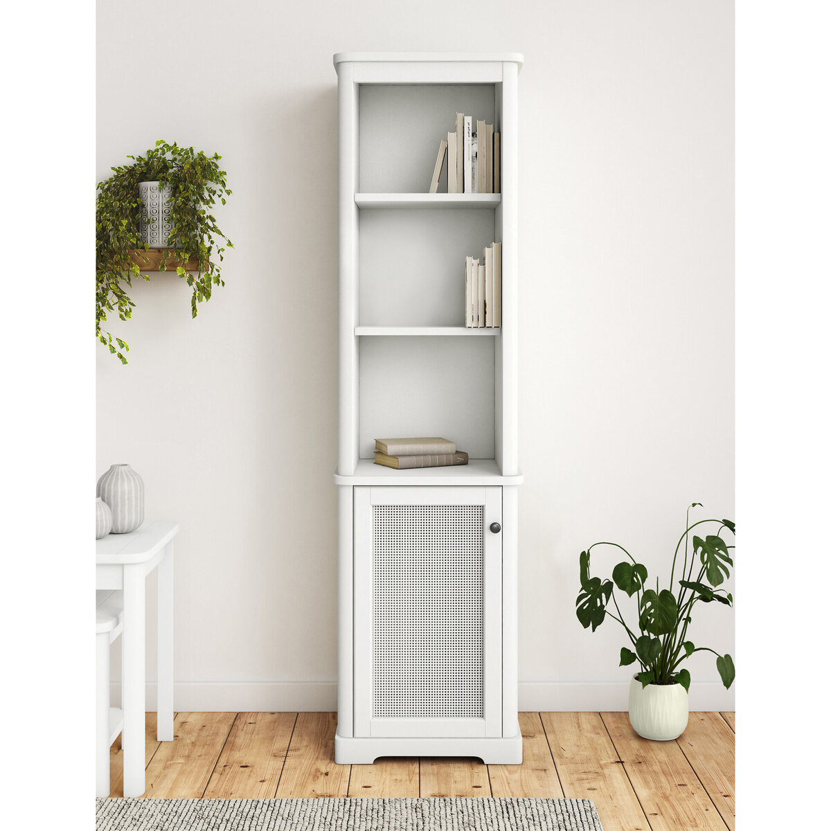 With its quality construction and soft painted finish, the Willow bookcase combines a country aesthetic with plenty of storage. The upper section features three deep, open shelves. Below, a stylish woven door conceals extra shelving inside. Discover coordinating pieces in the rest of our Willow range.