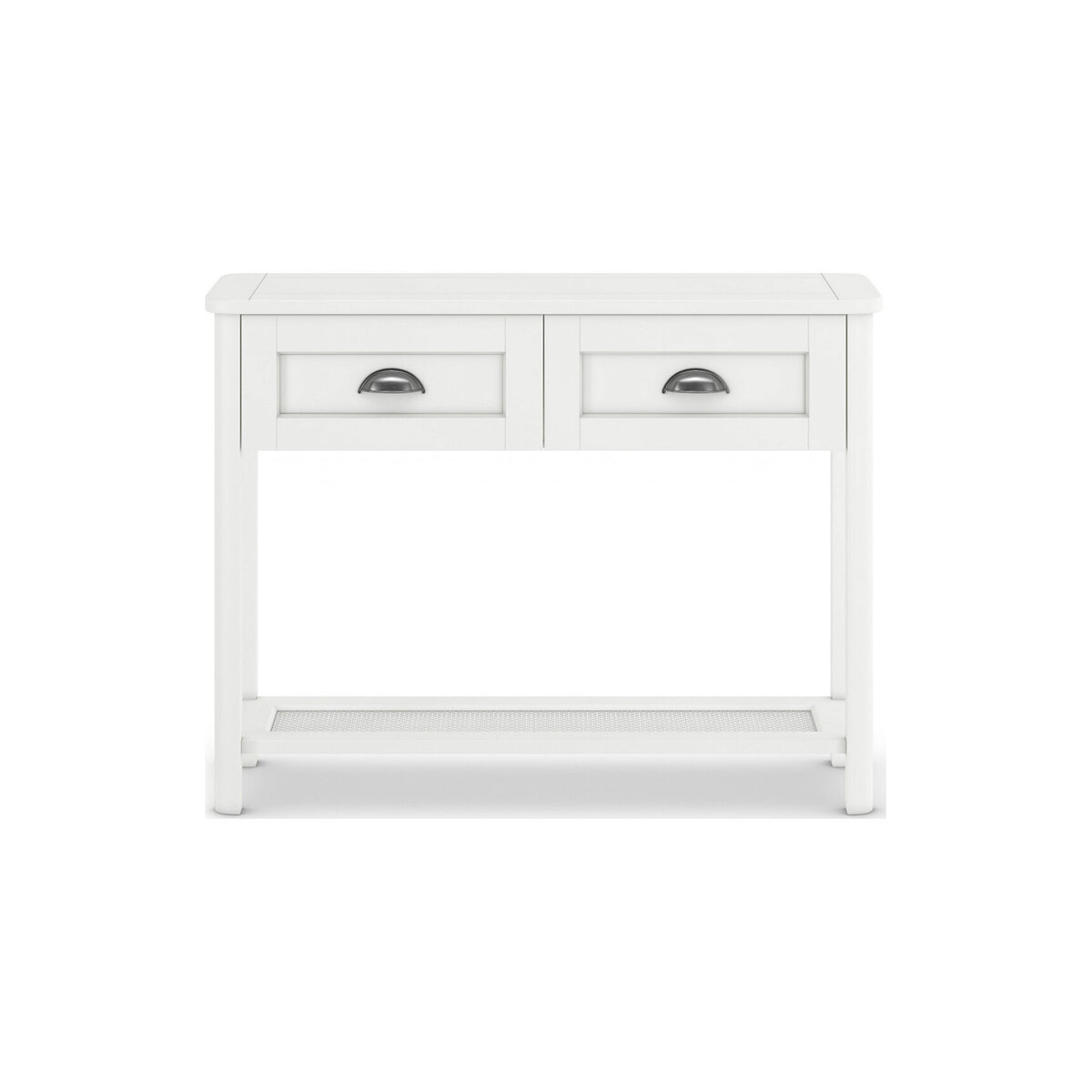 The Willow console table is built to last and features a soft painted finish for an authentic countryside look. Beneath the tabletop, two handy storage drawers are finished with stylish brushed metal handles. The piece is completed with slender wooden legs. Browse our complete Willow range for coordinating pieces.