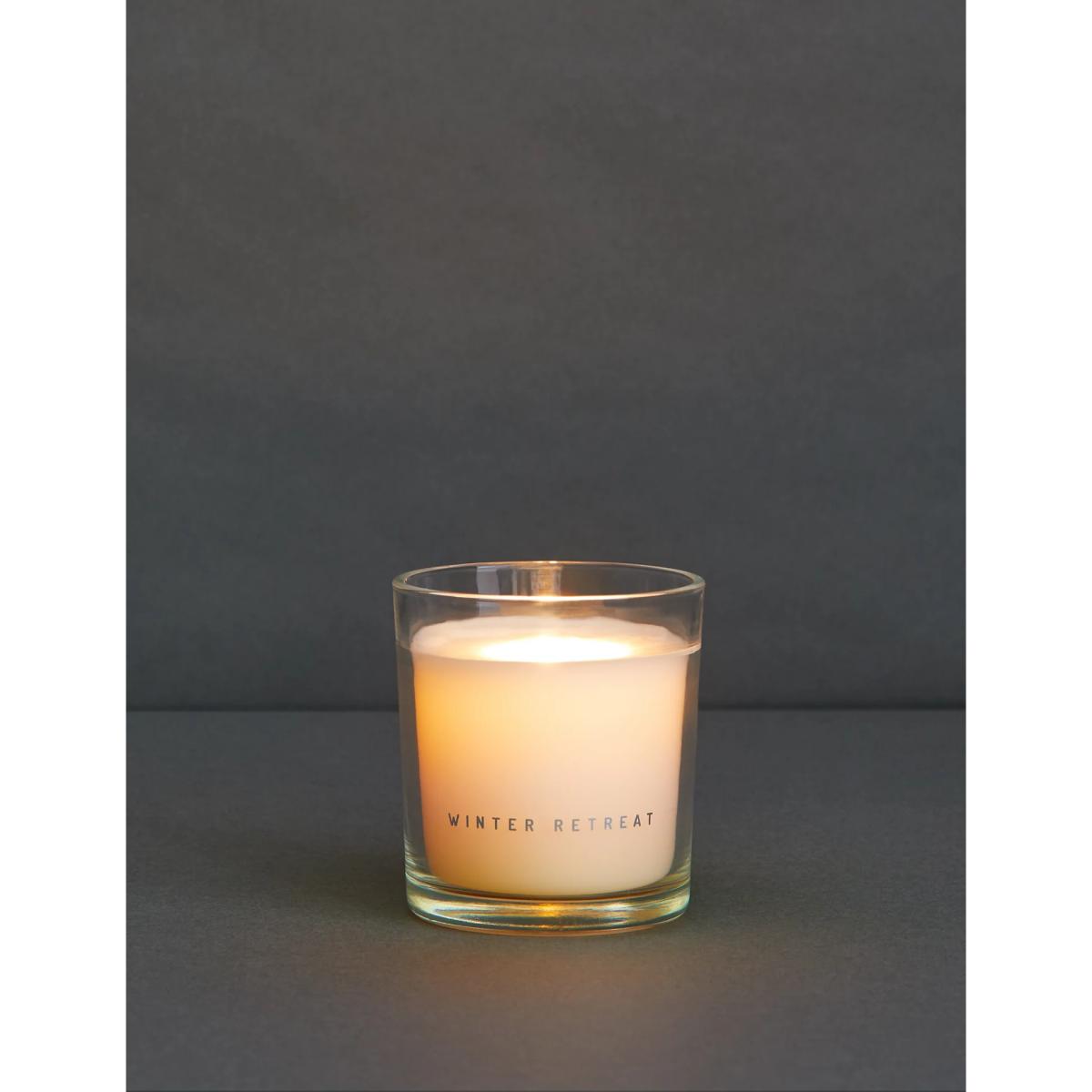 Enjoy a welcoming seasonal atmosphere with our Winter Retreat scented candle. Its calming fragrance combines fruity top notes with pine, cedar and clove, finished with warm musk, vanilla and leather. The candle is presented in a glass jar and an illustrated gift box, making it an ideal stocking filler. This fragrance is part of the Amber family of fragrances. Amber scents are rich and warming and may contain notes such as vanilla, pepper, tonka bean and amber.