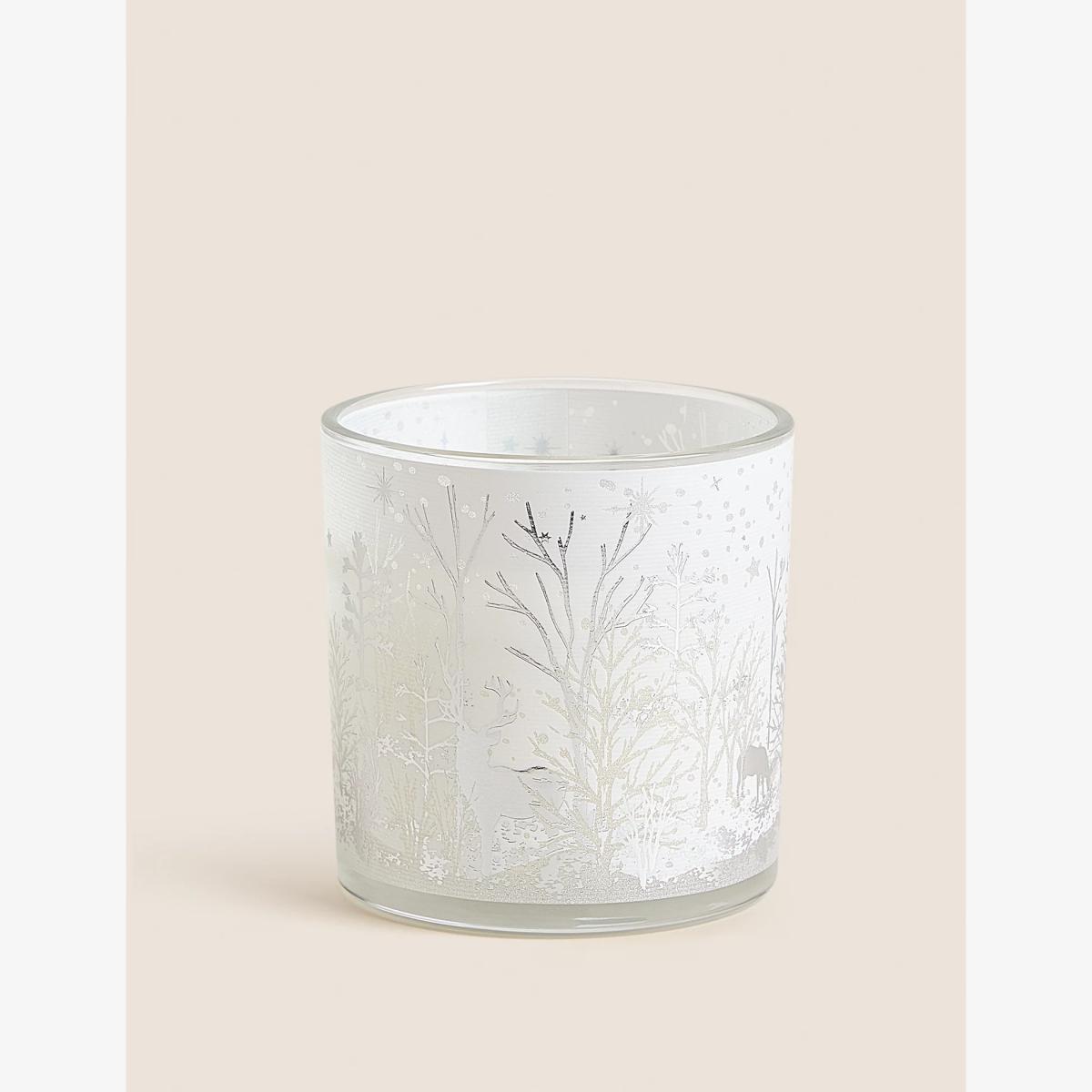 I love this silver shimmer candle for adding a touch of ambience and understated elegance to a variety of interiors. Its sleek, metallic finish works particularly well in modern, minimalist spaces, but it can also complement more traditional or winter-themed décors. I’d style it on a mantelpiece or a central coffee table, perhaps paired with textured textiles or frosted glass accessories for a layered look. Practical tips include using it alongside other metallic accents to create a cohesive look, or placing it in a reflective tray to contain any wax drips and enhance its shimmer effect. Its glow is perfect for cosy evenings, making it a versatile addition to both everyday settings and festive arrangements.