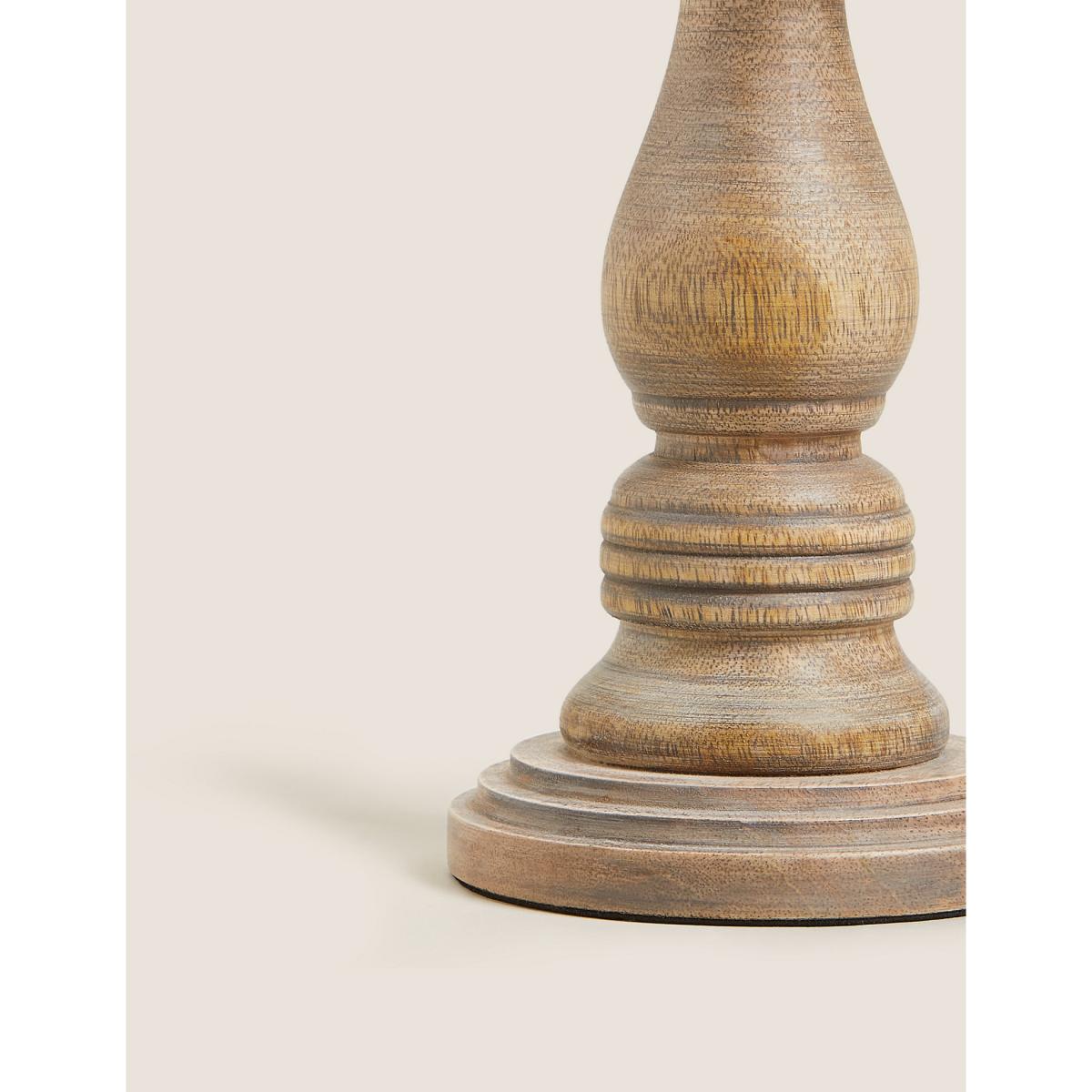 Light a pillar candle on this large wooden holder to create the perfect cosy ambience. The whitewashed wood and simple carved design make it suitable for a variety of interiors.