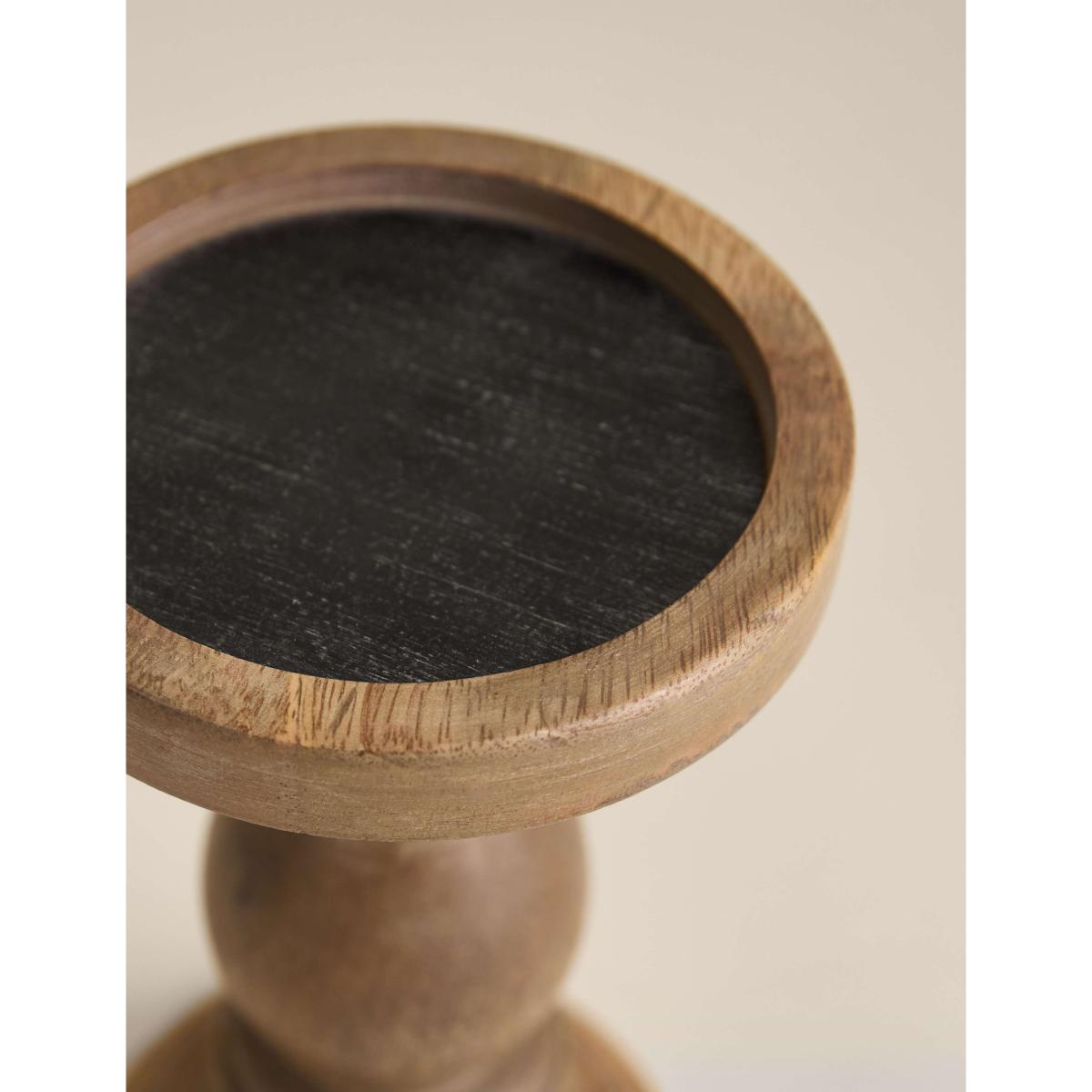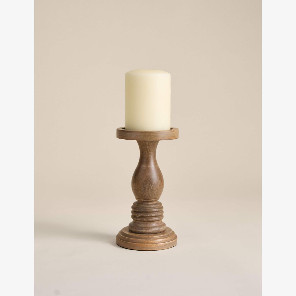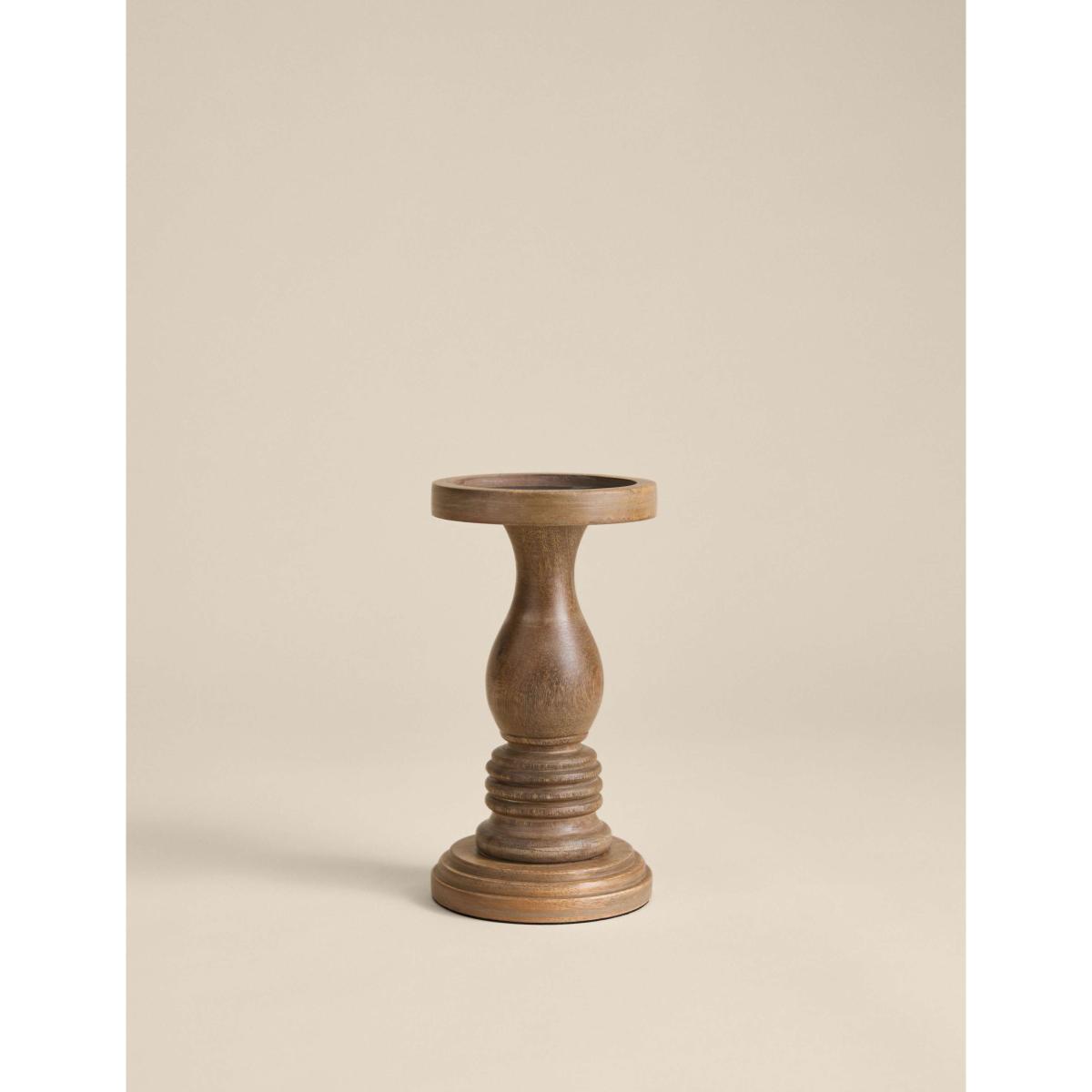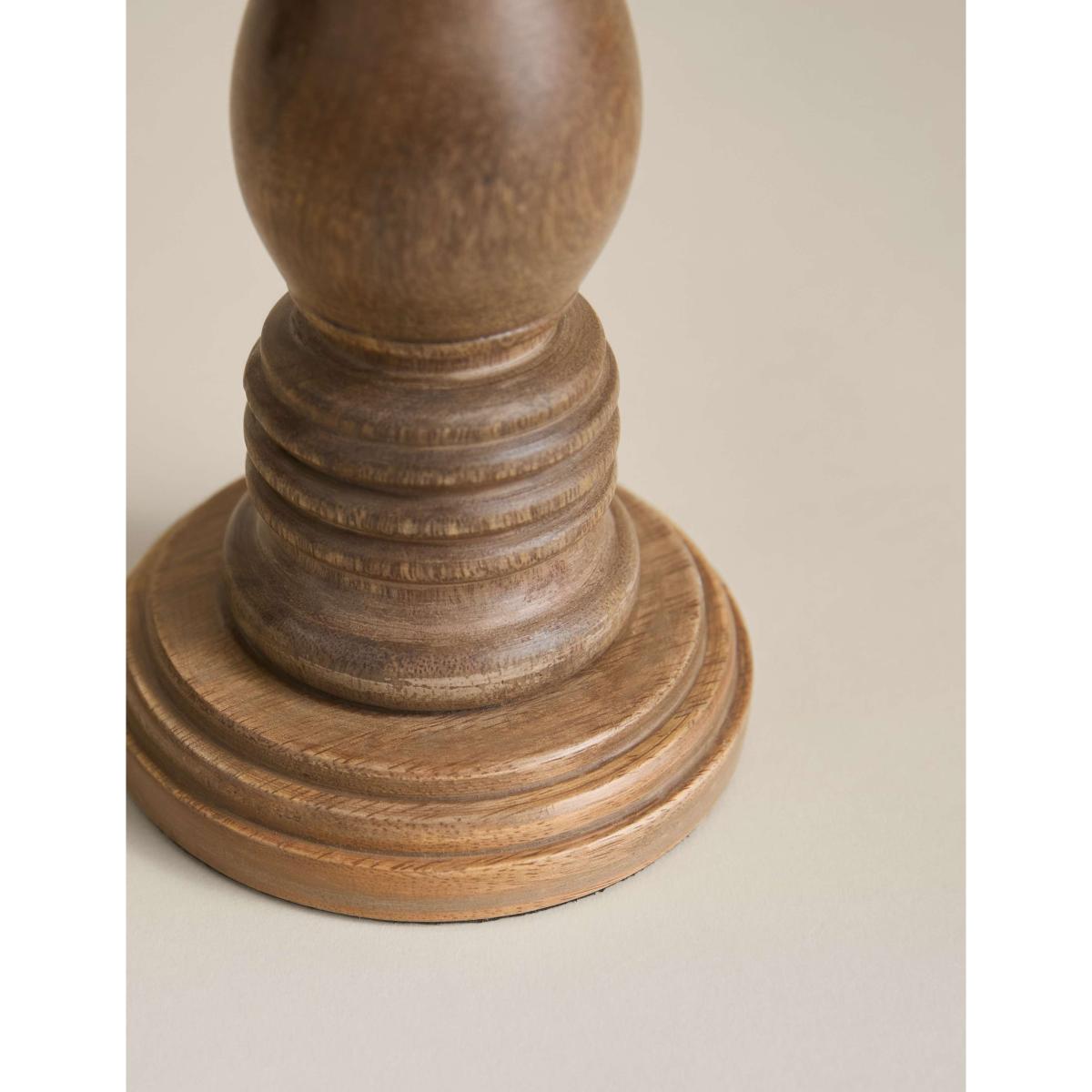This tall candle holder will add a timeless touch to your interior. It's made from wood with a gorgeous grain and a smooth, undulating silhouette. The design features a wide plinth on the top, perfect for displaying traditional pillar candles.