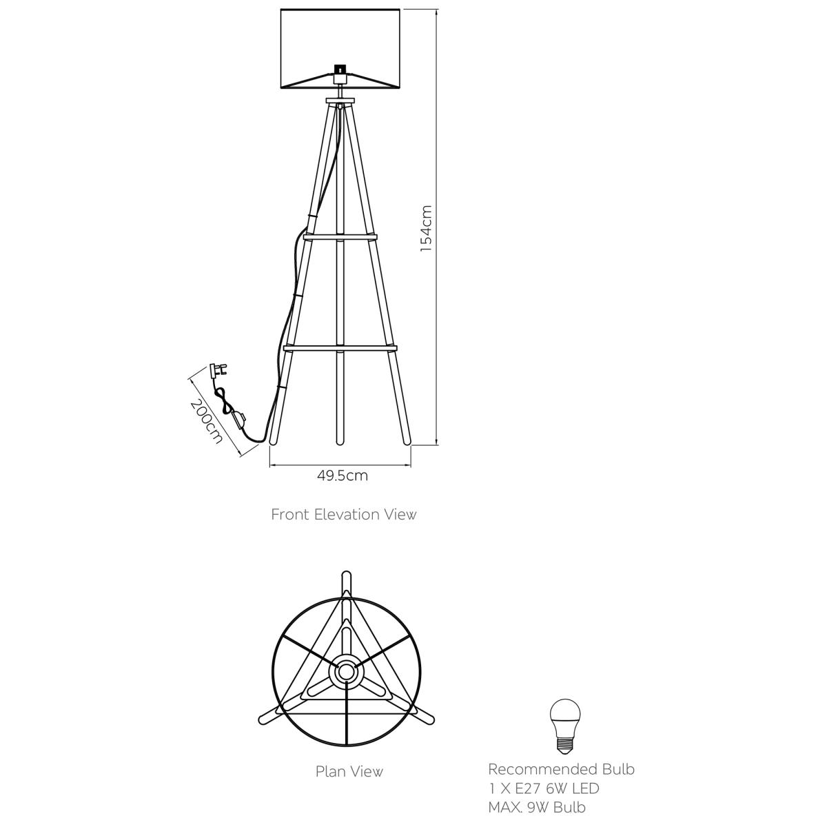 M&S Wooden Tripod Floor Lamp - Natural, Natural