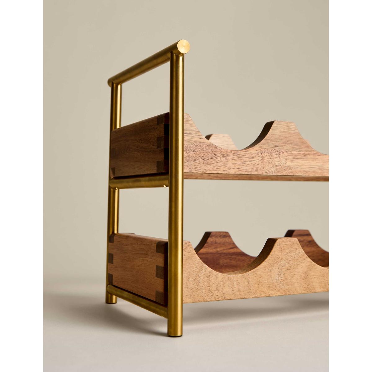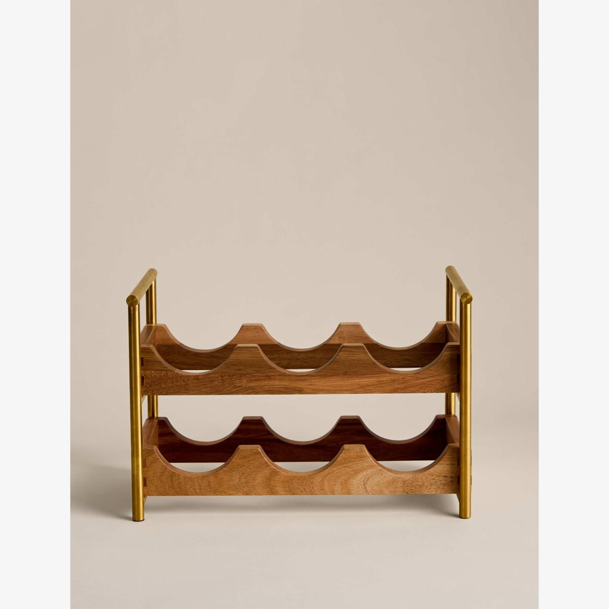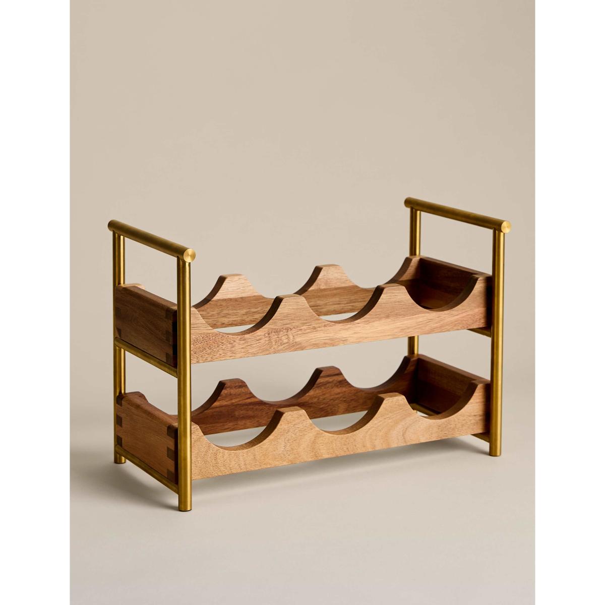 Store and present your favourite bottles on this free-standing wooden wine rack. It's made with space for six bottles, and finished with brushed gold-tone legs for a stylish look.