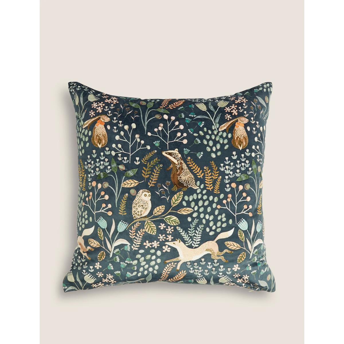 M&S Woodland Print Embroidered Cushion - Navy Mix, Navy Mix