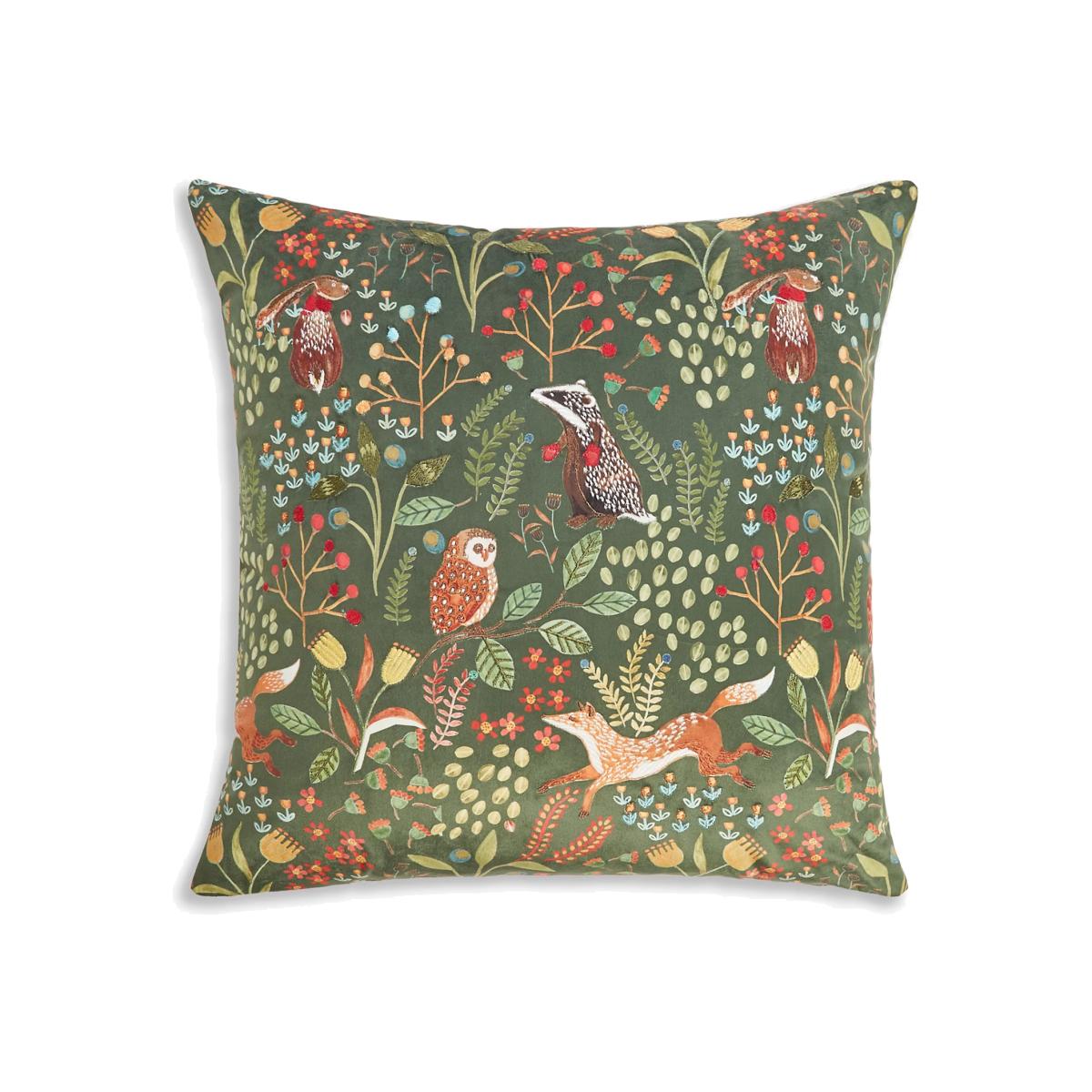 I love the woodland print cushion for its charming nature-inspired design and detailed embroidery, which adds a touch of texture and interest. It works particularly well in eclectic, country, or modern interiors that embrace cosy, nature-themed aesthetics. To style it effectively, pair it with neutral-toned sofas or armchairs to let the pattern stand out, or layer it with other cushions in complementary colours like soft greens or warm browns for a more layered look. Practical tips include using it as a statement piece on a sofa or armchair, or mixing it with plain cushions to avoid an overly busy feel, making it both a stylish and versatile addition to any seating area.