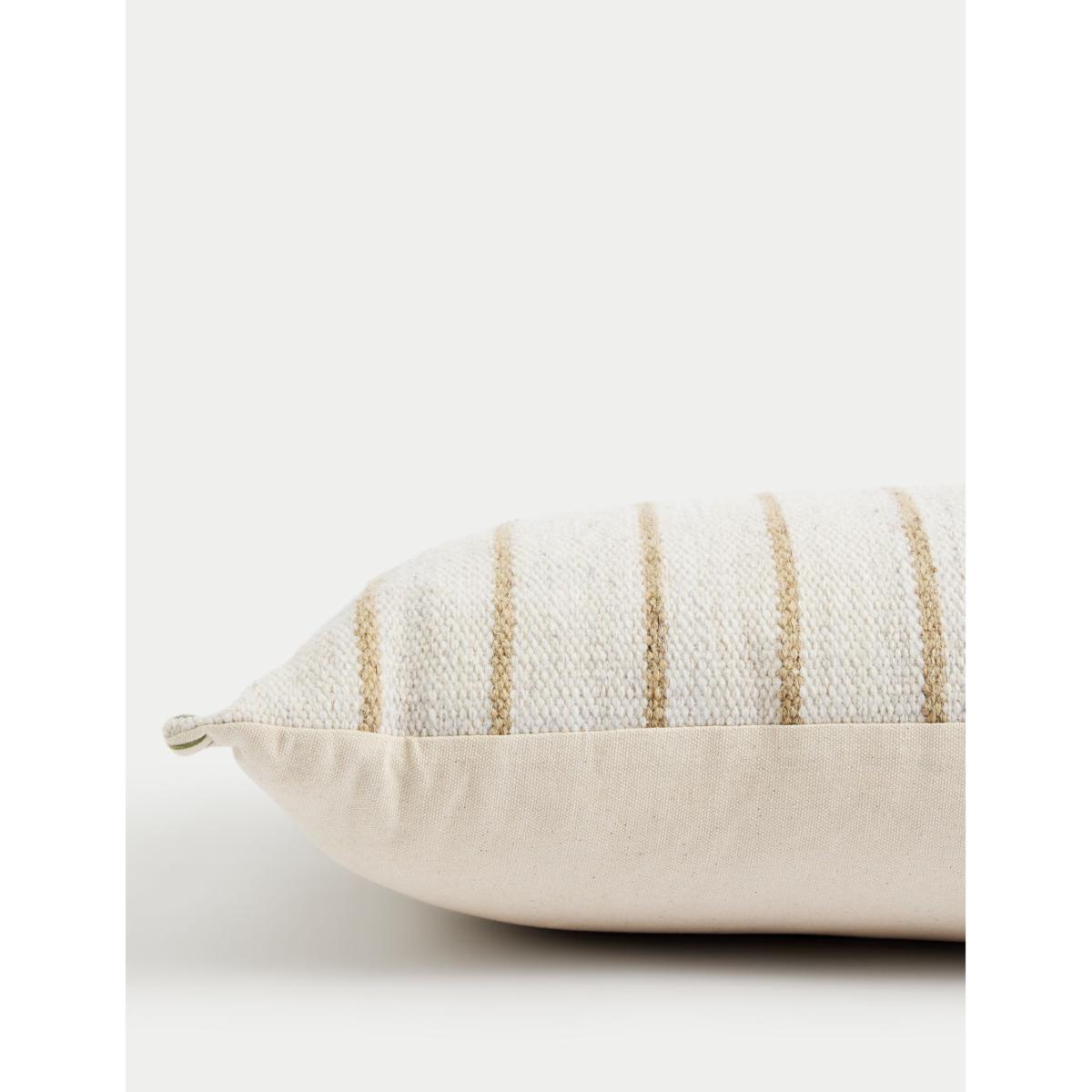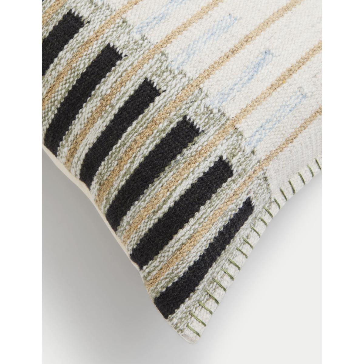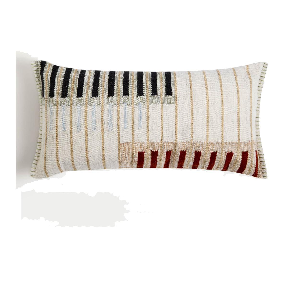 Invite a touch of texture to your interior with this small bolster cushion, made from a natural blend of wool and cotton. The striped design features bold blocks of colour woven into the fabric, creating a modern rustic feel.