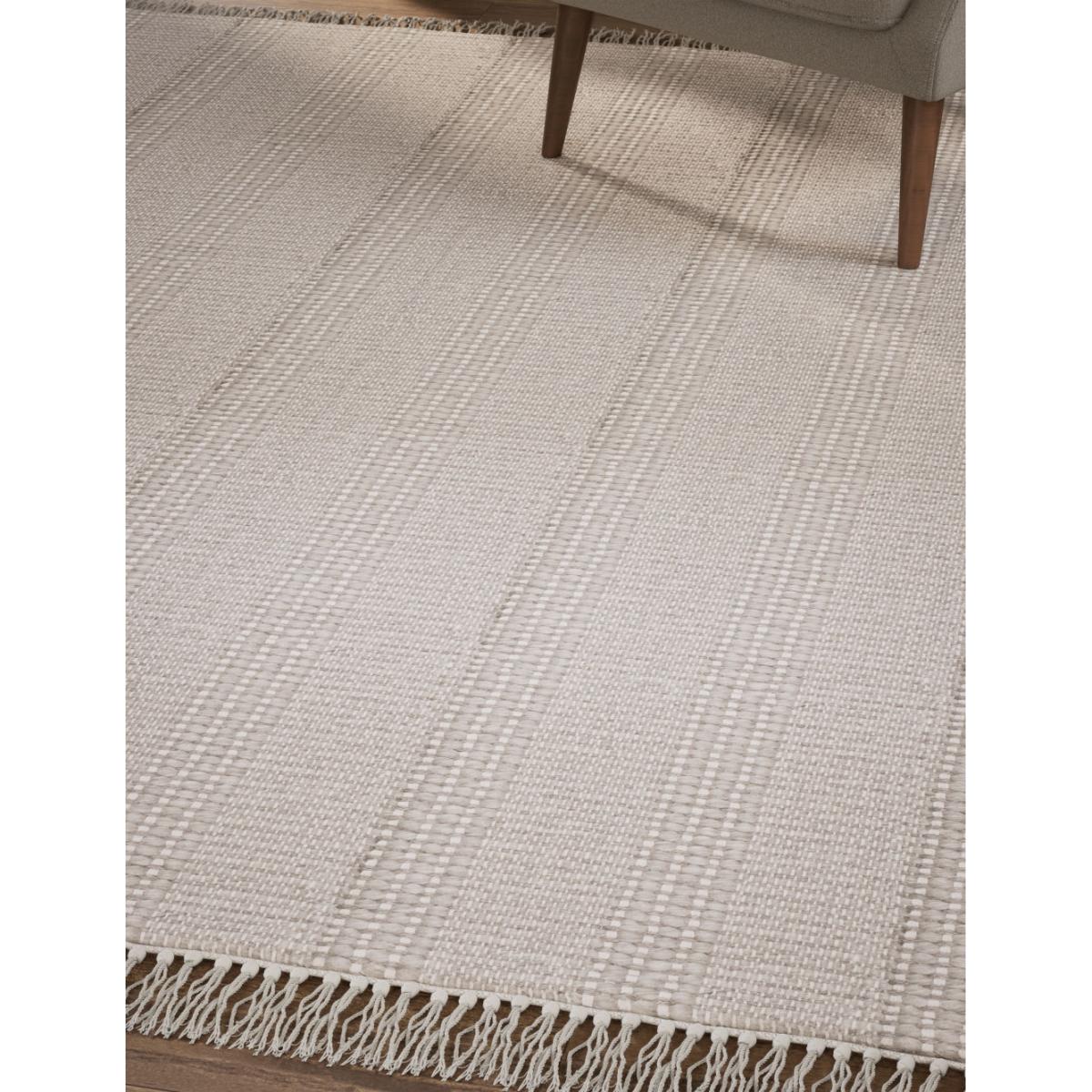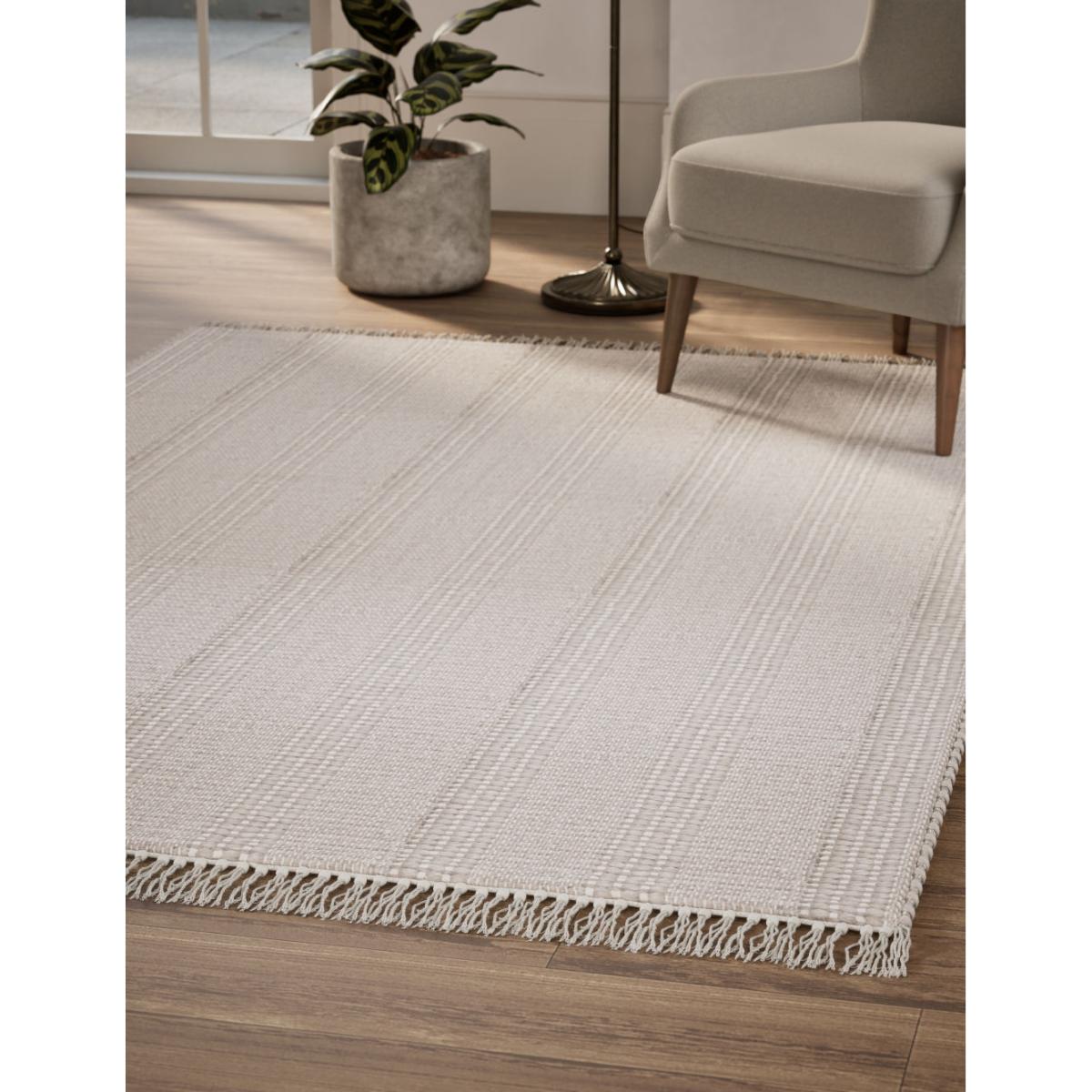 Understated stripes enhance the natural texture of this wool-rich rug. Its versatile design is complete with tassel detailing on the edges for a timeless touch.