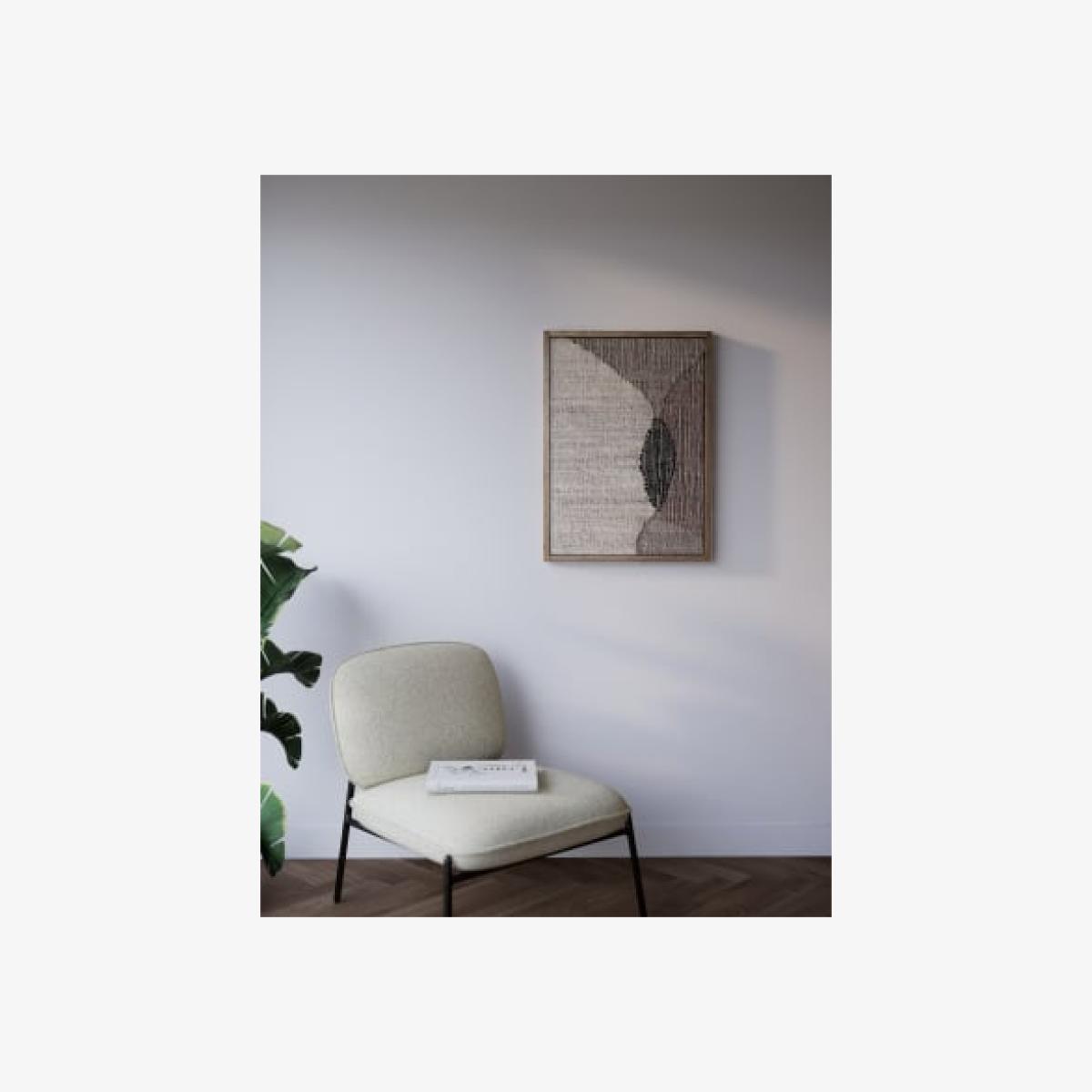 I really like this woven abstract rectangle print as it adds texture and visual interest without overwhelming a space. It works particularly well in contemporary or minimalist interiors, providing a subtle focal point above seating areas or in entryways. For styling, consider pairing it with neutral tones or soft textiles to enhance the tactile quality of the piece. Practical tips include framing it at eye level for impact and using it alongside other understated art or natural materials to keep the look cohesive. Its versatile colour palette and abstract design make it a great choice for adding depth to both modern and Scandinavian-inspired interiors.