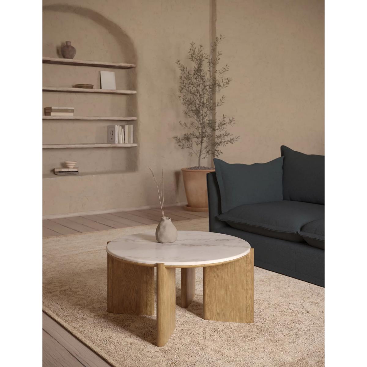 With its sculptural silhouette and mixed material design, the Blenheim coffee table makes for a stylish focal point in your room. Part of the M&S X Fired Earth collaboration, its luxurious real marble top sits on four heavily textured oak veneer legs, evoking a modern-rustic look. Match yours with other pieces from the Blenheim range to continue the contemporary theme in your home. We’re so confident our furniture is built to last, our industry-leading guarantee covers any manufacturing failure on all furniture. That’s our promise, and why our furniture comes with a 10-year guarantee that you can trust. Excludes: outdoor furniture and any issues that are a result of normal wear and tear, improper care or accidental damage.