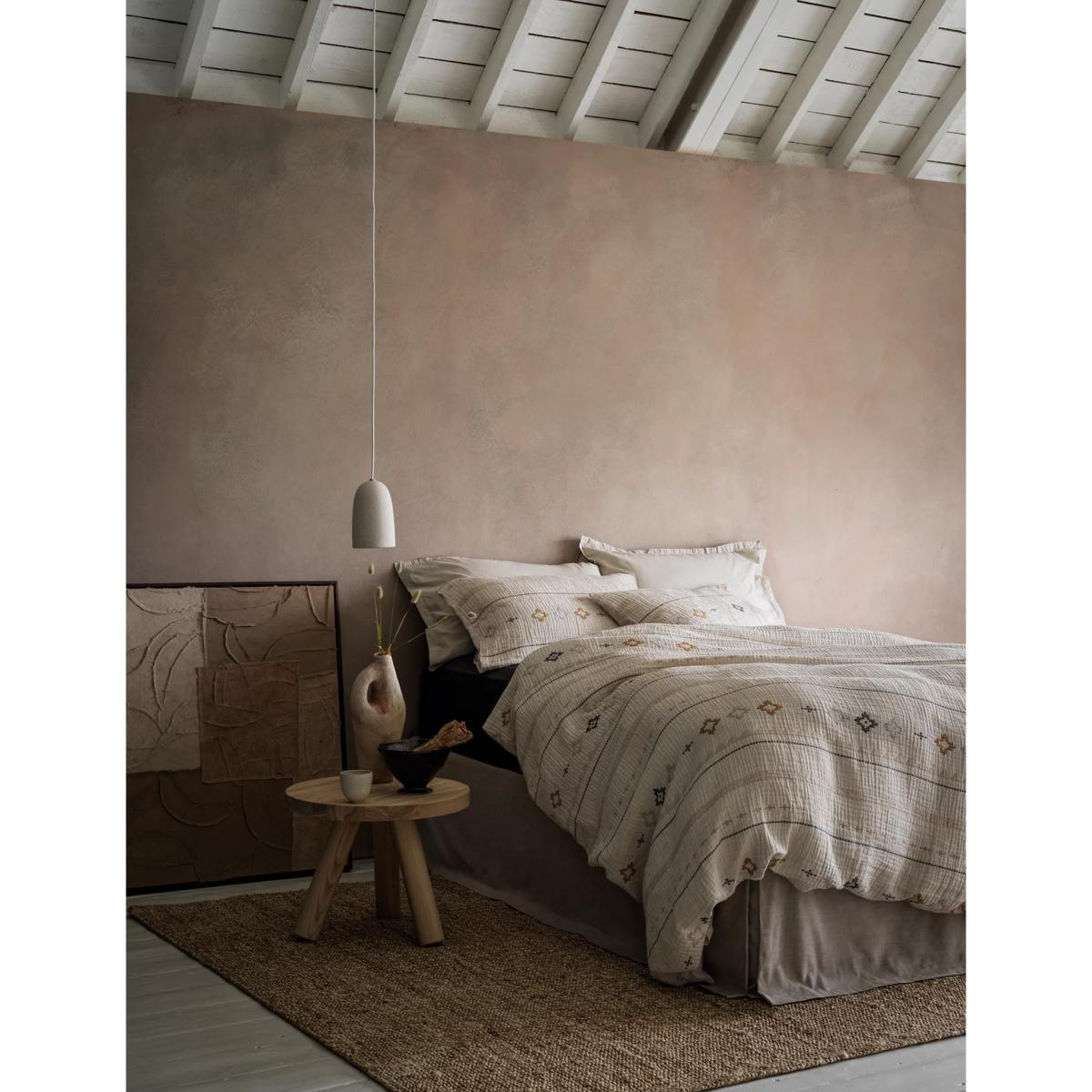 I love the M&S X Fired Earth Casablanca bedding because of its subtle, timeless pattern and versatile colour palette, making it easy to blend into various interior styles. Its natural mix design lends itself well to both classic and contemporary bedrooms, adding warmth and texture without overpowering other decor elements. For styling tips, pair it with neutral or earthy accessories for a cohesive look, or add a few colourful cushions and throws to introduce a pop of personality. This bedding works particularly well in relaxed, understated schemes and can be layered with textured throws or knitted bed covers for added comfort and visual interest.
