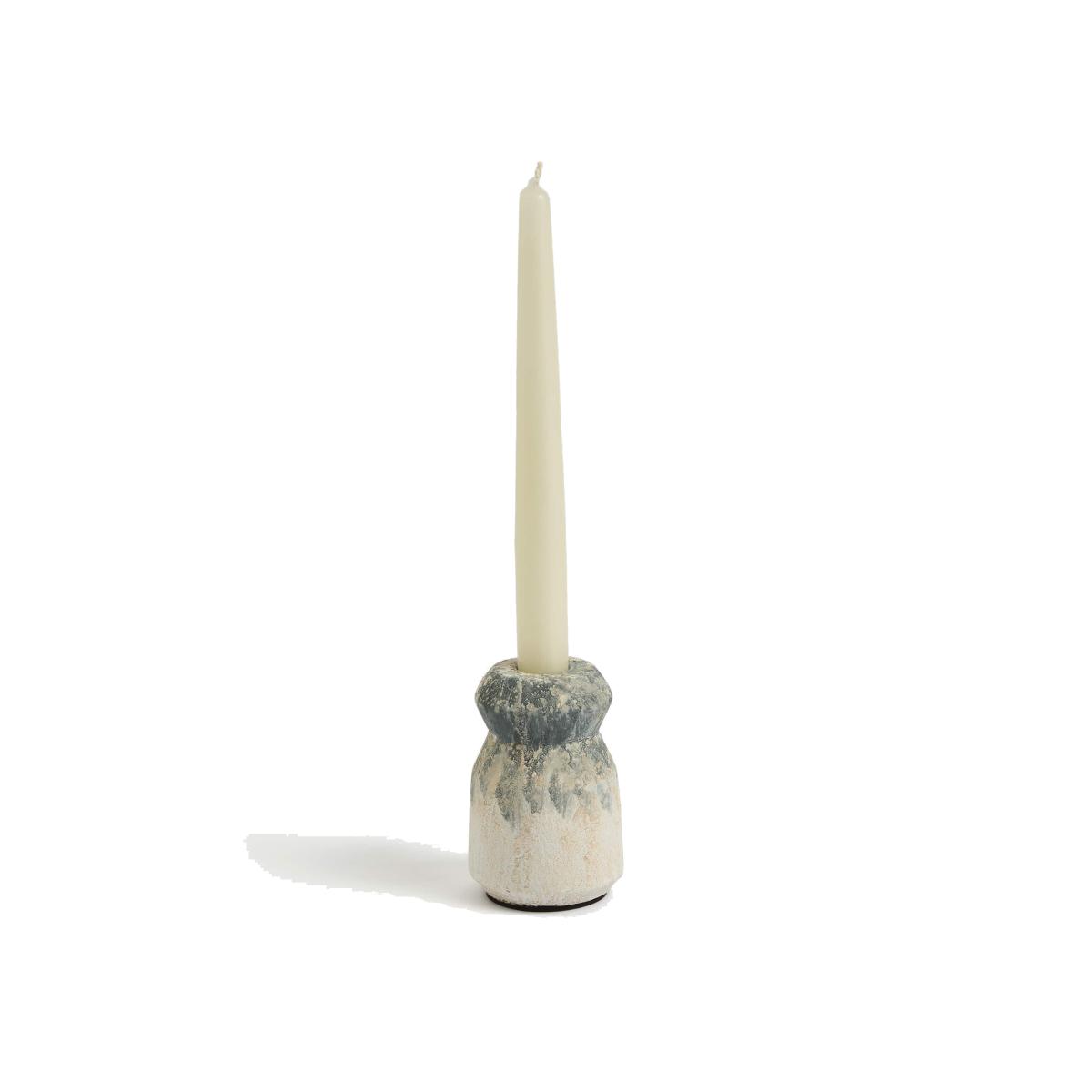 M&S X Fired Earth Concrete Dinner Candle Holder - Blue Mix, Blue Mix