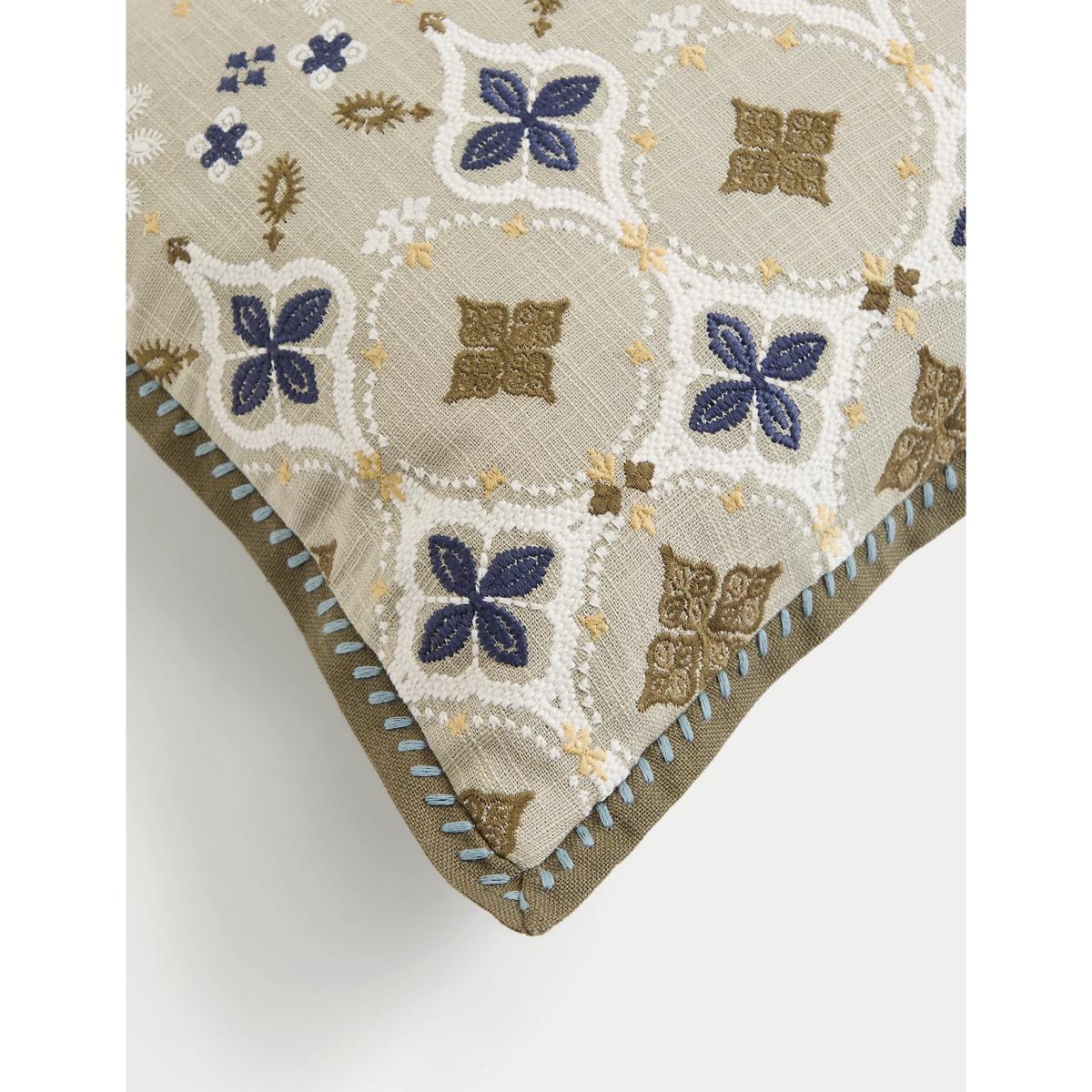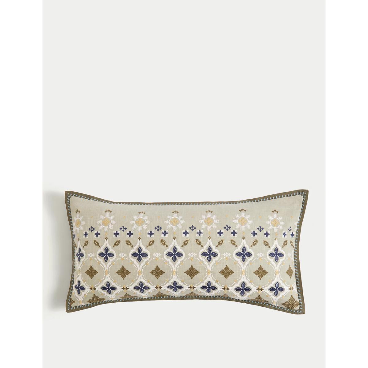 Crafted from a cotton-rich fabric, this cushion from the M&S X Fired Earth collaboration has a distinctively premium look and feel. Its large, bolster shape is filled with feathers to bring luxurious plushness to your bed or sofascape. The embroidered geometric design is inspired by the bustling, colourful markets of Jaipur in India.
