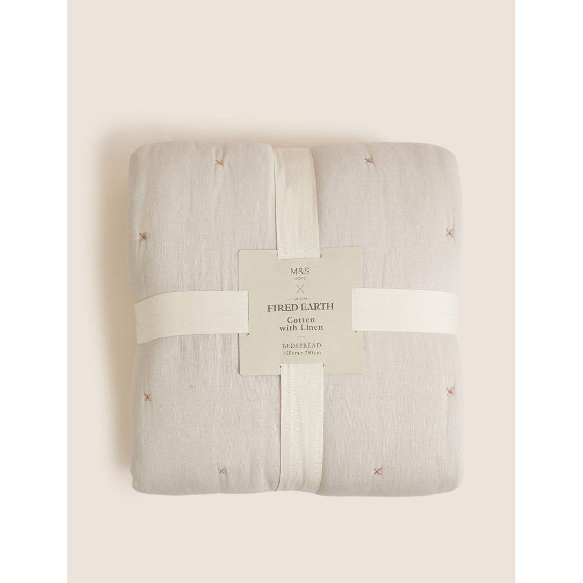 M&S X Fired Earth Cotton with Linen Bedspread - MED - Weald Green, Weald Green