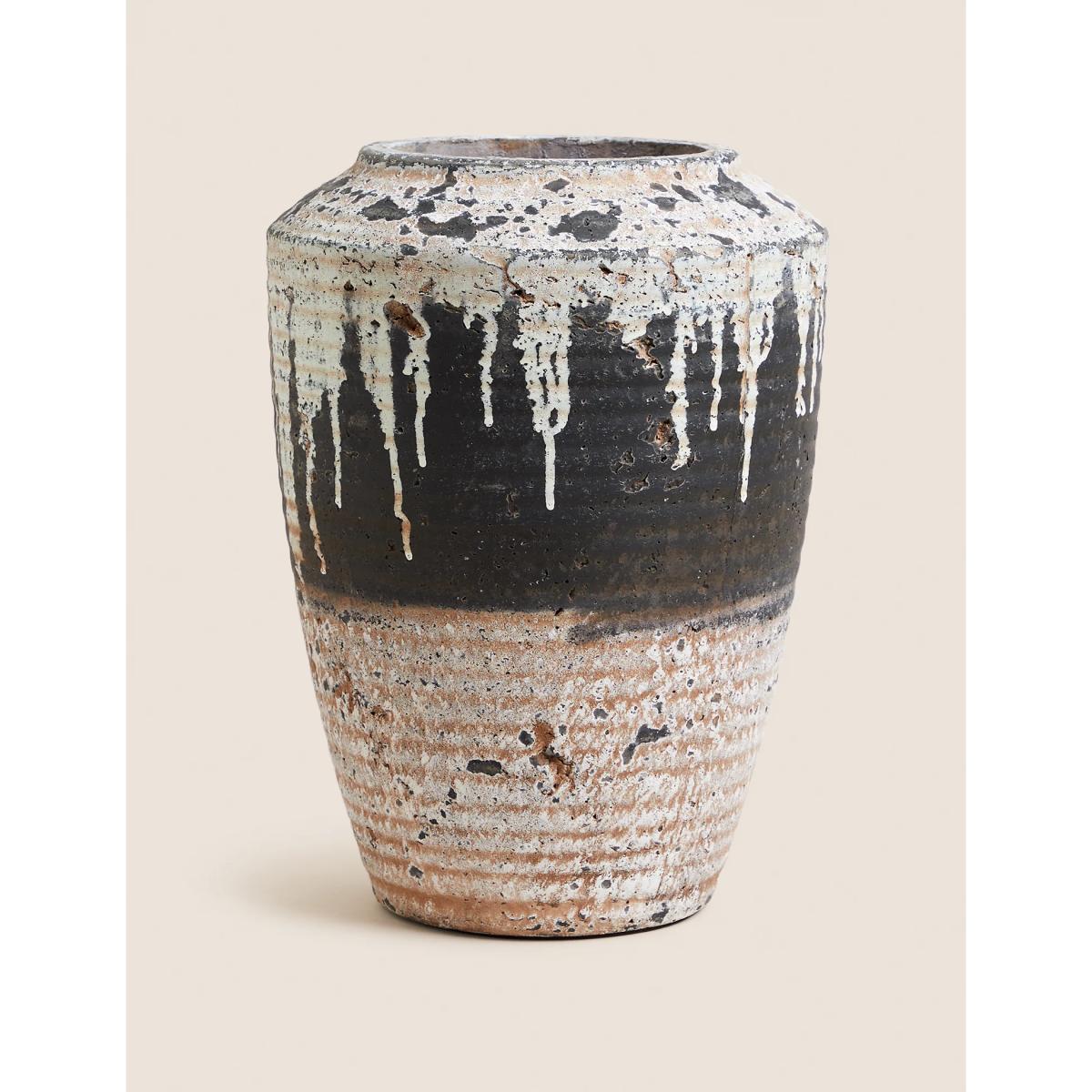 Thanks to its large size, this vase from the M&S X Fired Earth collection will stand out on any surface. It's crafted from concrete and decorated with a textured drip pattern that gives it an artistically weathered look. This product is for decorative use only. It is perfect for faux florals, but is not watertight.