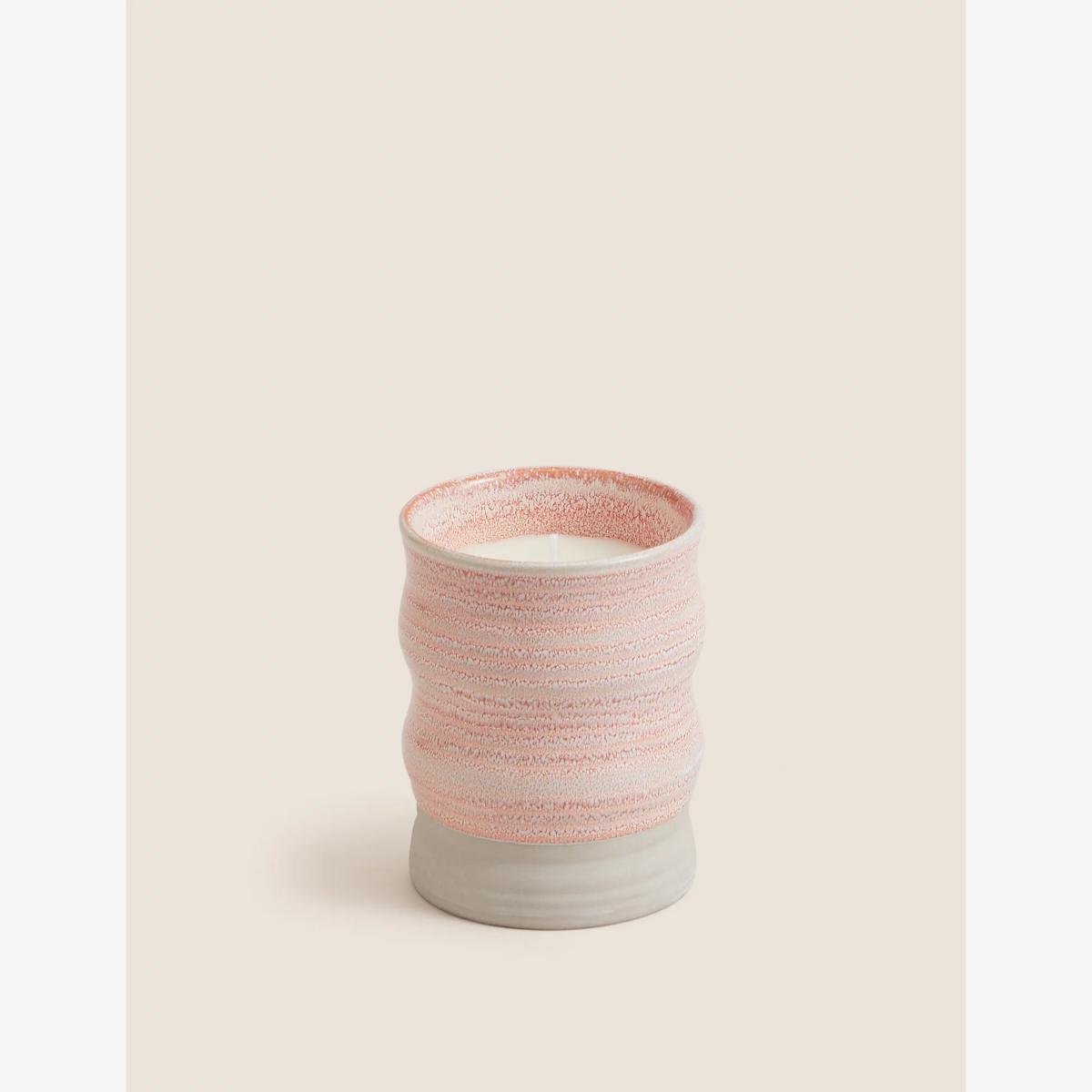 Bring exotic fragrances straight into your space with this scented candle from the M&S X Fired Earth collaboration. This wax candle blends notes of warm amber and saffron with rich spice and earthy wood and smoke. It's housed in a stylish curved jar with a reactive pink glaze which gives each piece a unique look. It is long lasting, offering 50 hours of burn time, and comes in a beautiful box making it an ideal present.