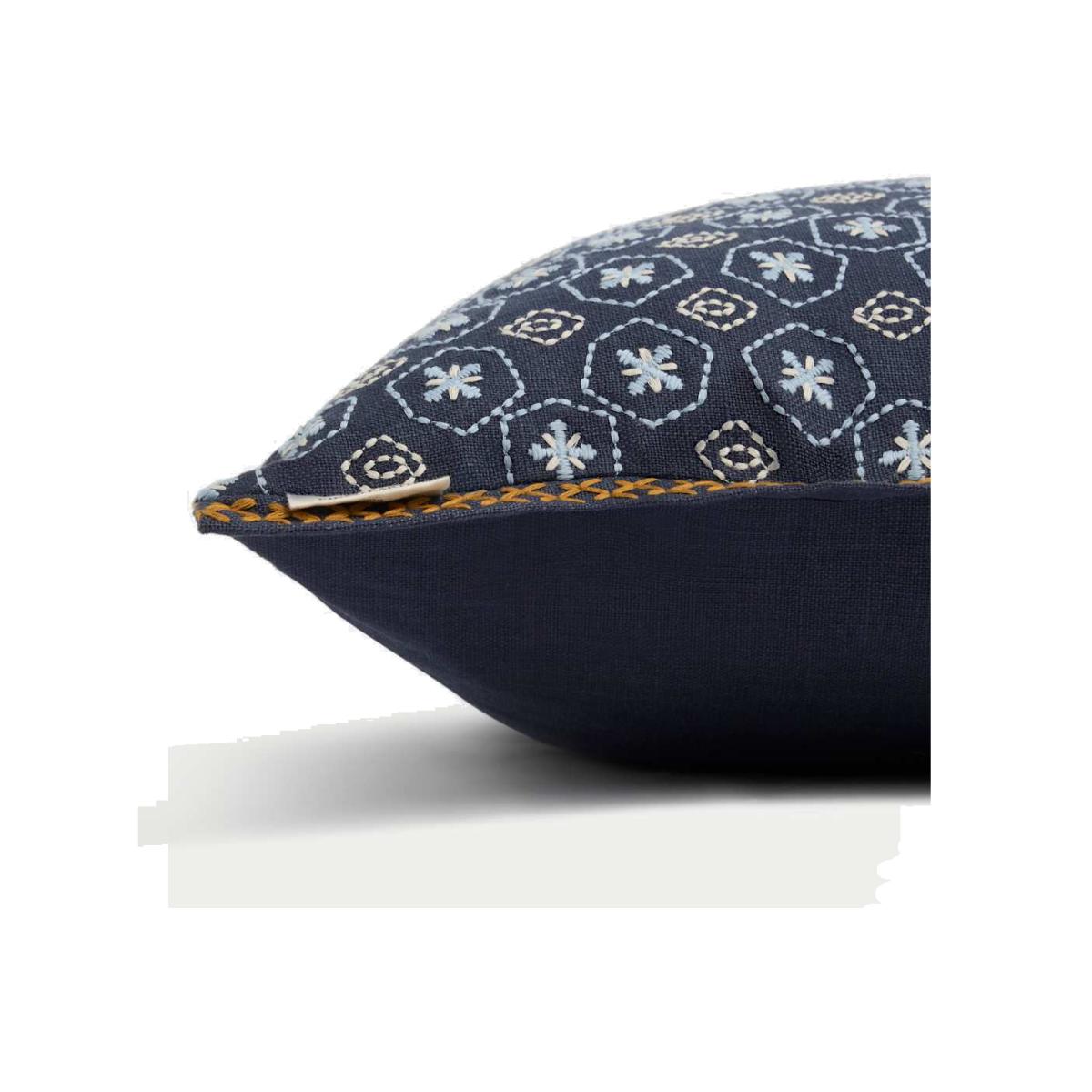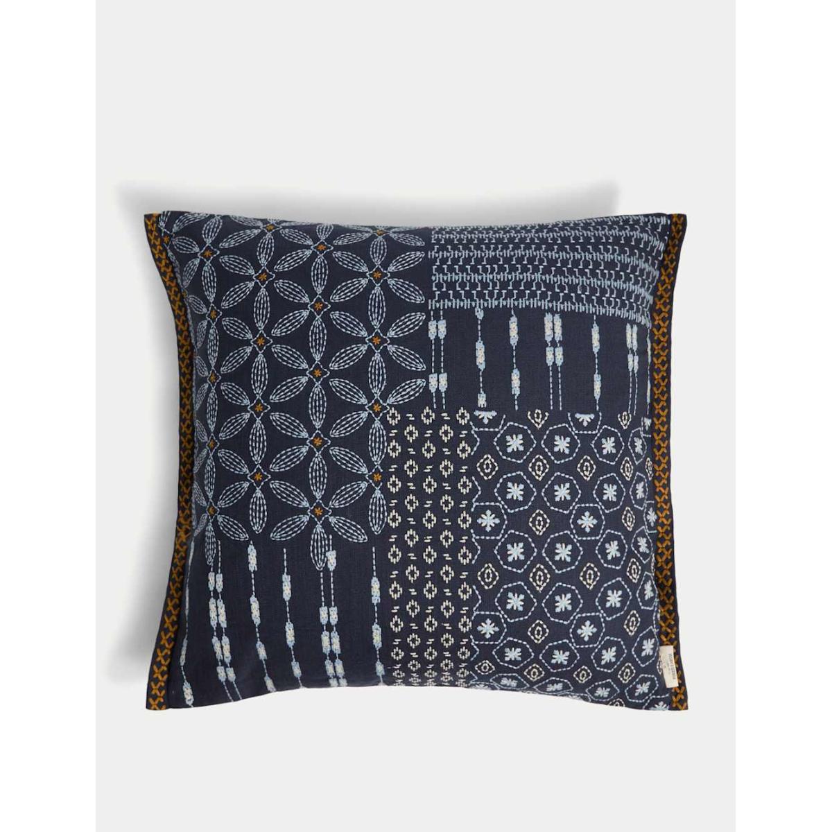 M&S X Fired Earth Pure Cotton Kouya Embroidered Cushion - Blue Mix, Blue Mix