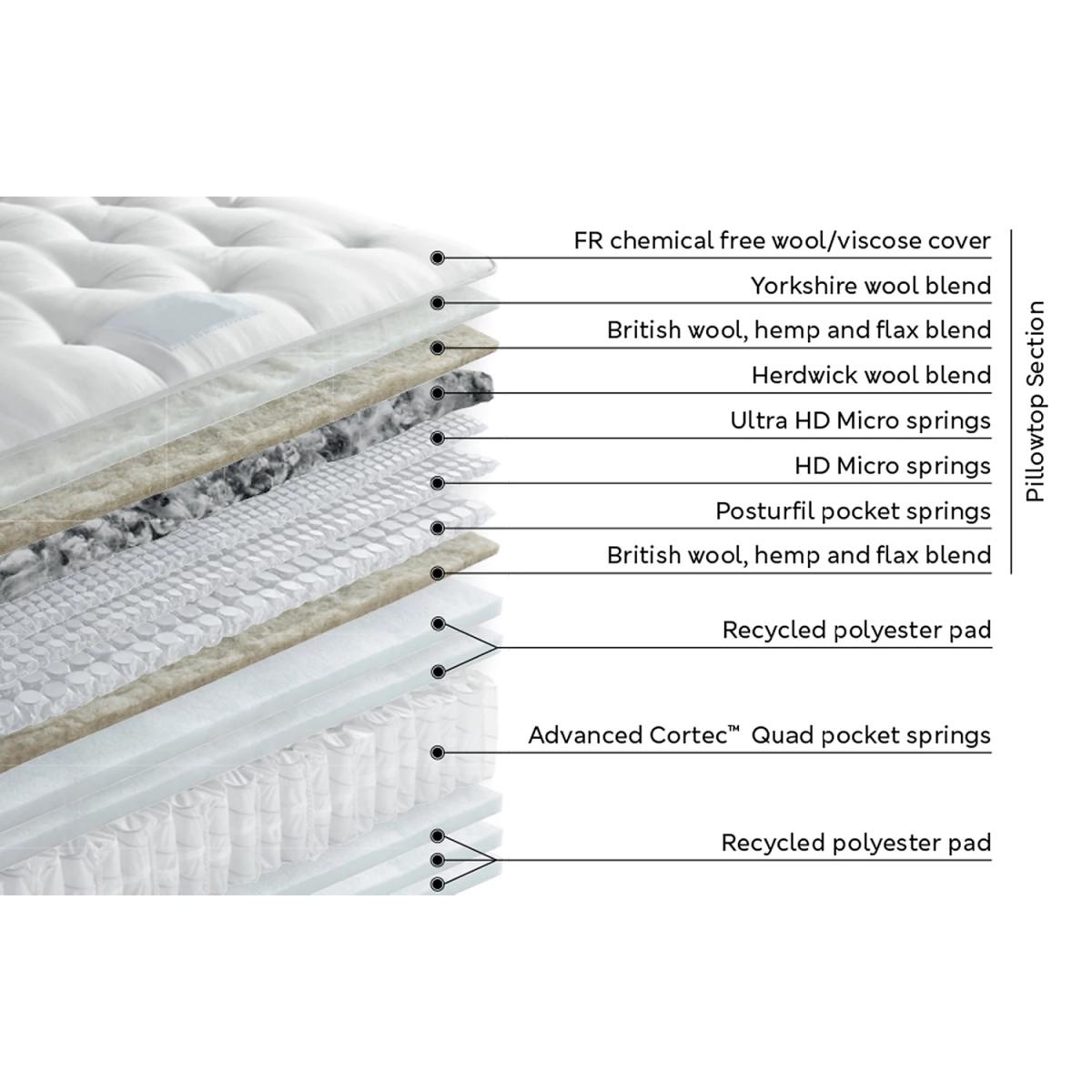 Enjoy a gloriously refreshing night's sleep with this mattress from the M&S X Harrison Spinks collection, which offers a medium-soft level of firmness. Within the core, the award-winning glue-free Cortec™ pocket spring system means each spring responds individually to support spinal alignment and offer superior pressure relief. Meanwhile, the sumptuous pillowtop combines natural fillings with thousands of Micro HD and Ultra HD springs to cradle you in ultimate comfort and luxury as you rest. The wool is a mixture of British, Herdwick and Yorkshire wools, which feel soft and springy. These natural fillings are grown on the Harrison Spinks farm and are antibacterial and anti-allergy to help keep your mattress fresh and hygienic. They also provide excellent temperature regulation. Each mattress is handmade in Yorkshire by skilled artisans, combining traditional techniques passed down through the generations, plus state-of-the-art innovations developed in-house at Harrison Spinks.