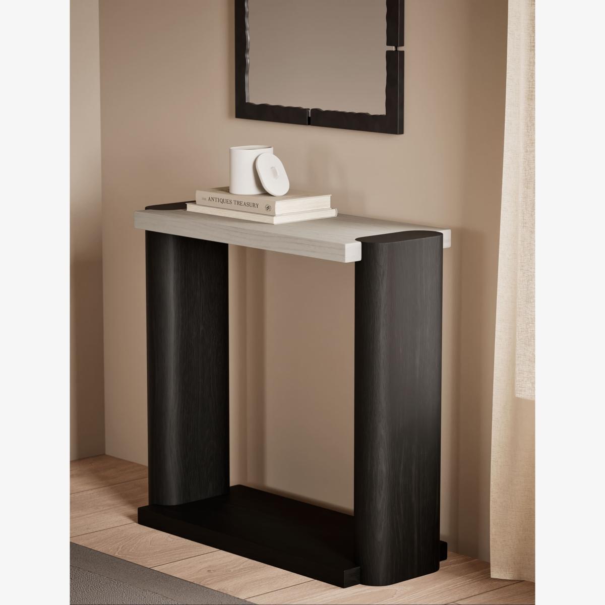 Featuring a slender, minimalist form, this console table from the M&S X Kelly Hoppen collection is ideal for hallways. It's made in a neat rectangular design, with a sturdy oak base that's finished in a bold black colourway. The light oak veneer top provides a striking contrast. We’re so confident our furniture is built to last, our industry-leading guarantee covers any manufacturing failure on all furniture. That’s our promise, and why our furniture comes with a 10-year guarantee that you can trust. Excludes: outdoor furniture and any issues that are a result of normal wear and tear, improper care or accidental damage.
