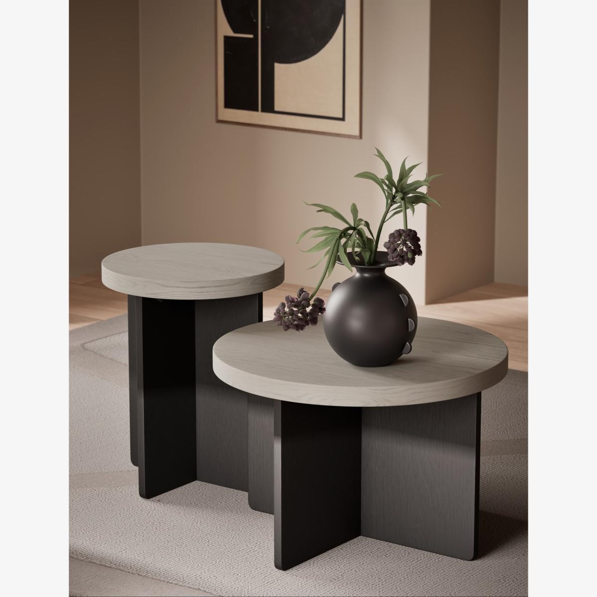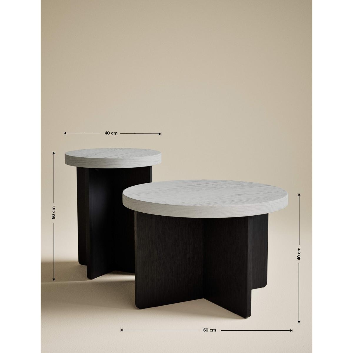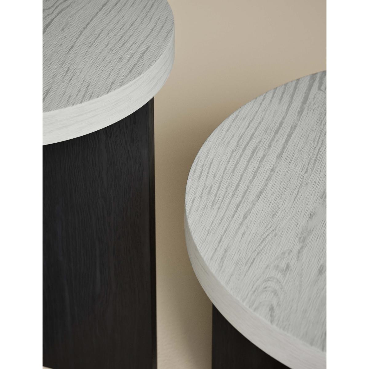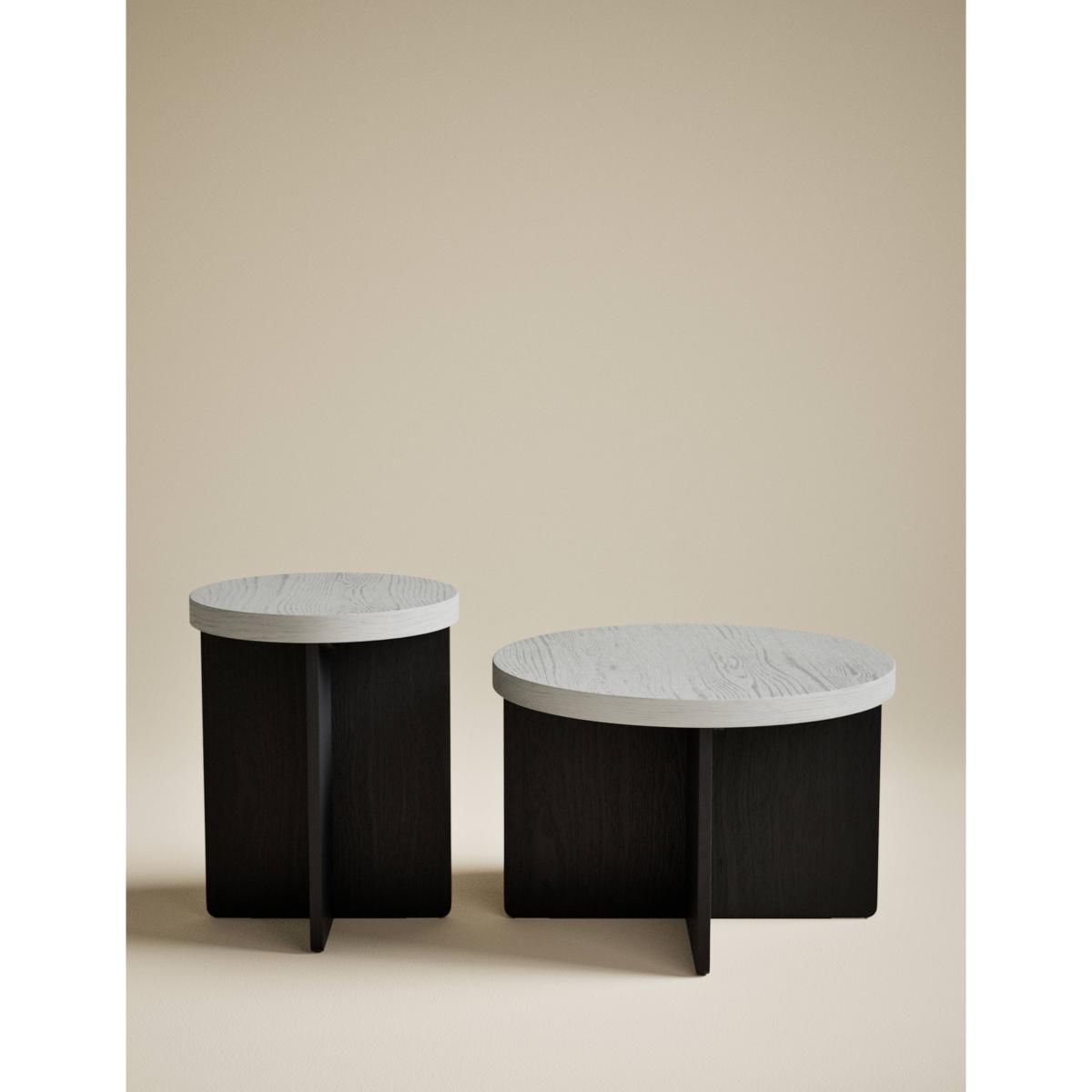 These two versatile coffee tables from the M&S X Kelly Hoppen collection provide stylish extra surface space when you need it. They're made in a circular form, lending them a contemporary feel. The light-coloured oak veneer tops boldly contrast with the black legs for a striking look. We’re so confident our furniture is built to last, our industry-leading guarantee covers any manufacturing failure on all furniture. That’s our promise, and why our furniture comes with a 10-year guarantee that you can trust. Excludes: outdoor furniture and any issues that are a result of normal wear and tear, improper care or accidental damage.