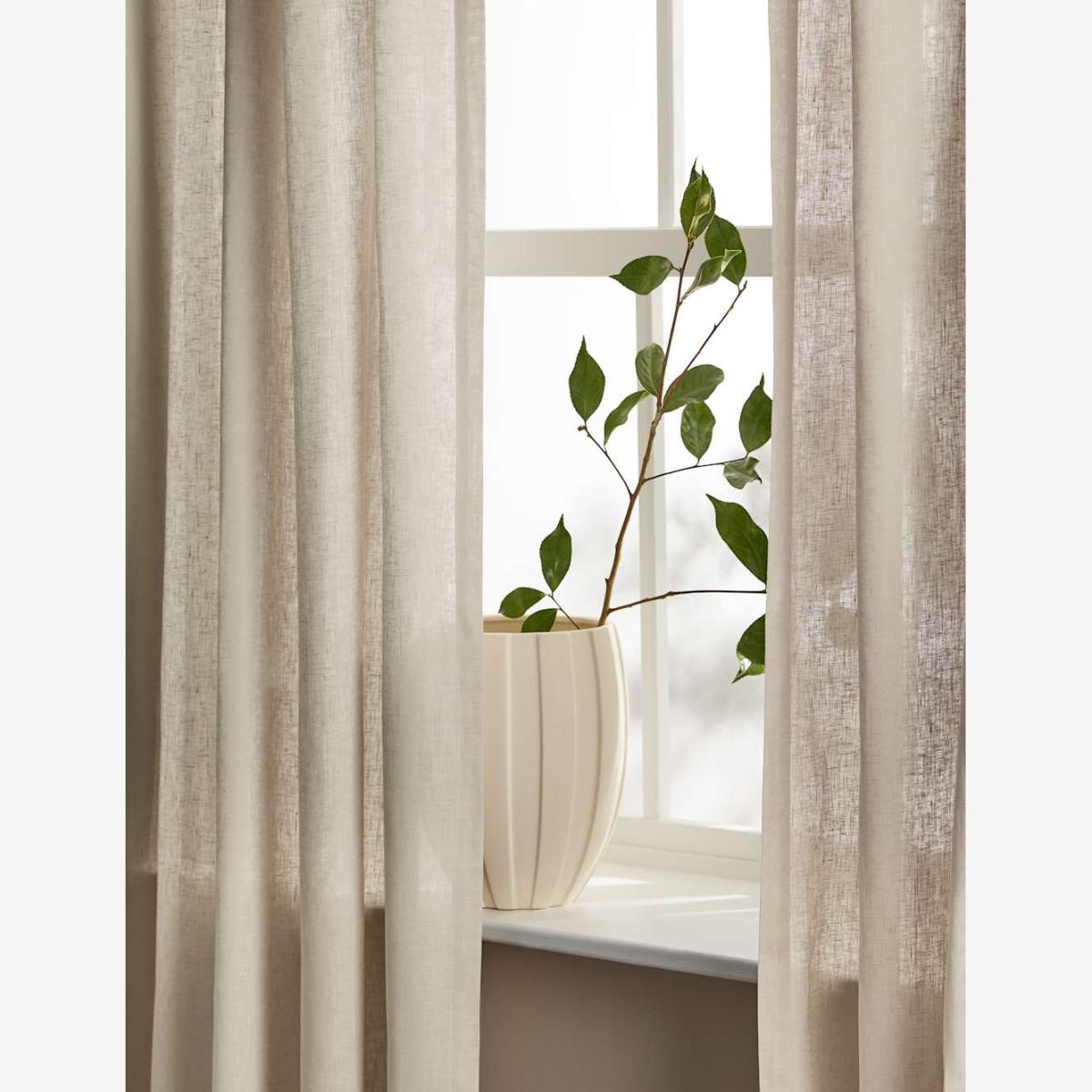 These pure linen curtains from our M&S X Kelly Hoppen collaboration introduce an airy elegance to your space. The lightly woven, sheer fabric softly filters daylight. These curtains feature a simple tab top design that allows for effortless draping.