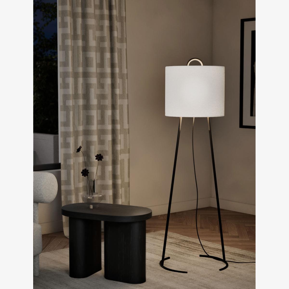 I love this lamp for its sleek, minimalist design that adds a modern edge to a variety of interiors. Its black tripod base brings a touch of industrial chic, making it a versatile piece for both contemporary and pared-back schemes. It works particularly well in living rooms or bedrooms where you want to create a cosy atmosphere with a statement light. Practical styling tips include pairing it with textured fabrics or soft furnishings to soften the look, and placing it next to a comfortable armchair or side table to make the most of its warm glow. Its understated elegance means it can easily be integrated into both neutral and monochrome palettes for a cohesive, stylish finish.