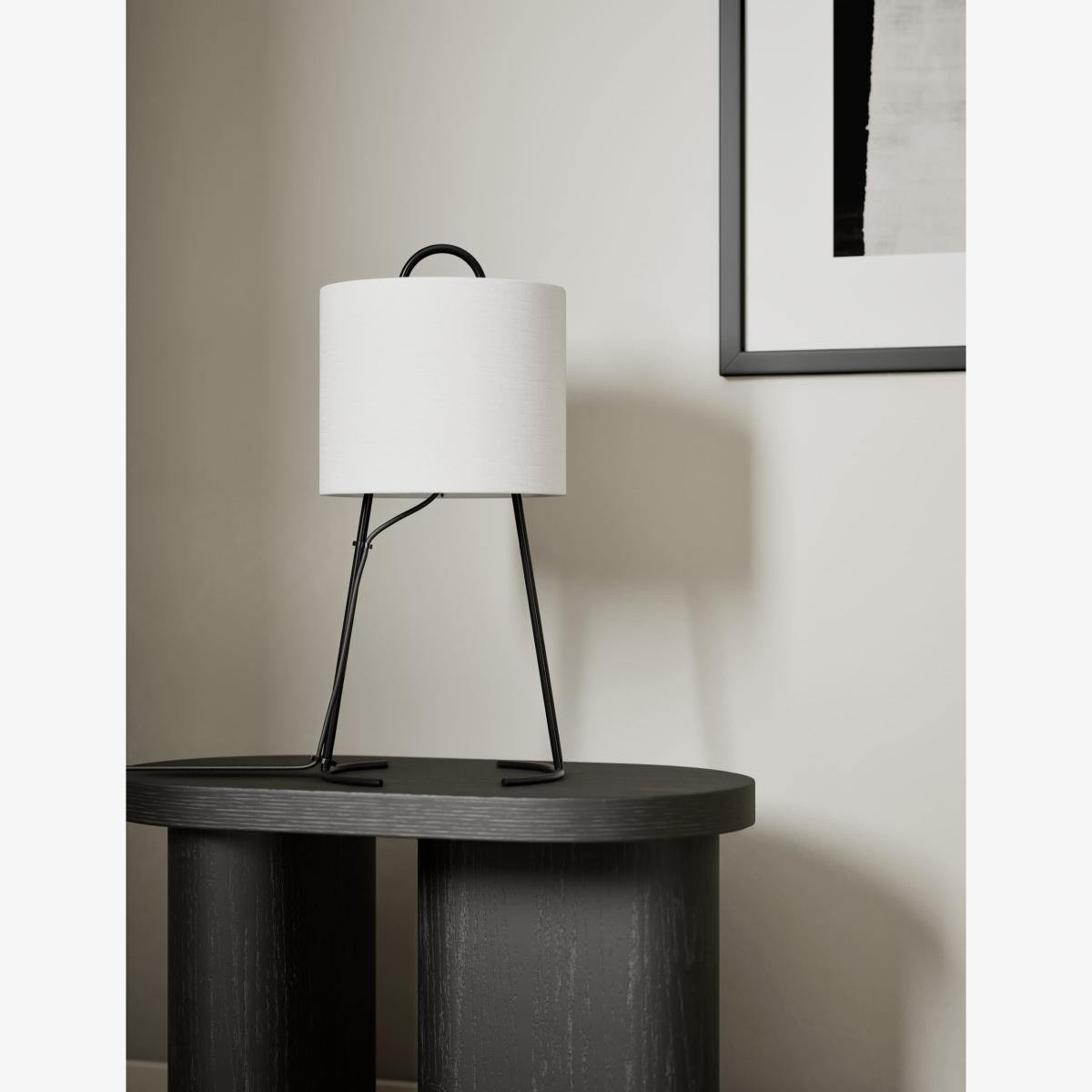 I love this tripod lamp for its sleek, modern silhouette that adds a touch of sophistication to any space. The black finish makes it versatile and ideal for contemporary or minimalist interiors, working well in living rooms, bedrooms, or even a stylish home office. To style it effectively, consider pairing it with other black or matte accents to create a cohesive look, or use it as a statement piece in a more neutral setting. Practical tips include positioning it on a side table or console to bring warmth and task lighting to your space, and pairing it with a warm-toned lampshade if you want to soften the overall mood. It's a great way to introduce a sculptural element that’s both functional and stylish.
