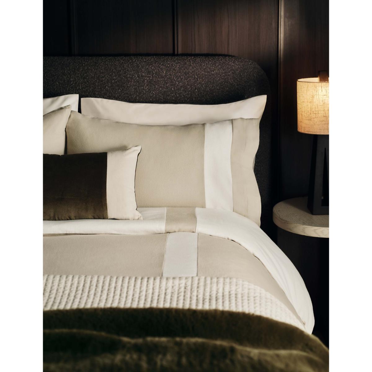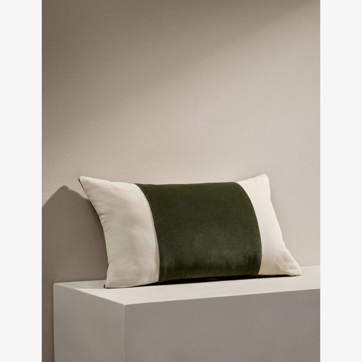 This bolster cushion from the M&S x Kelly Hoppen collection captures the designer's sense of understated luxury. It showcases distinctive velvet panels for contemporary textural contrast.