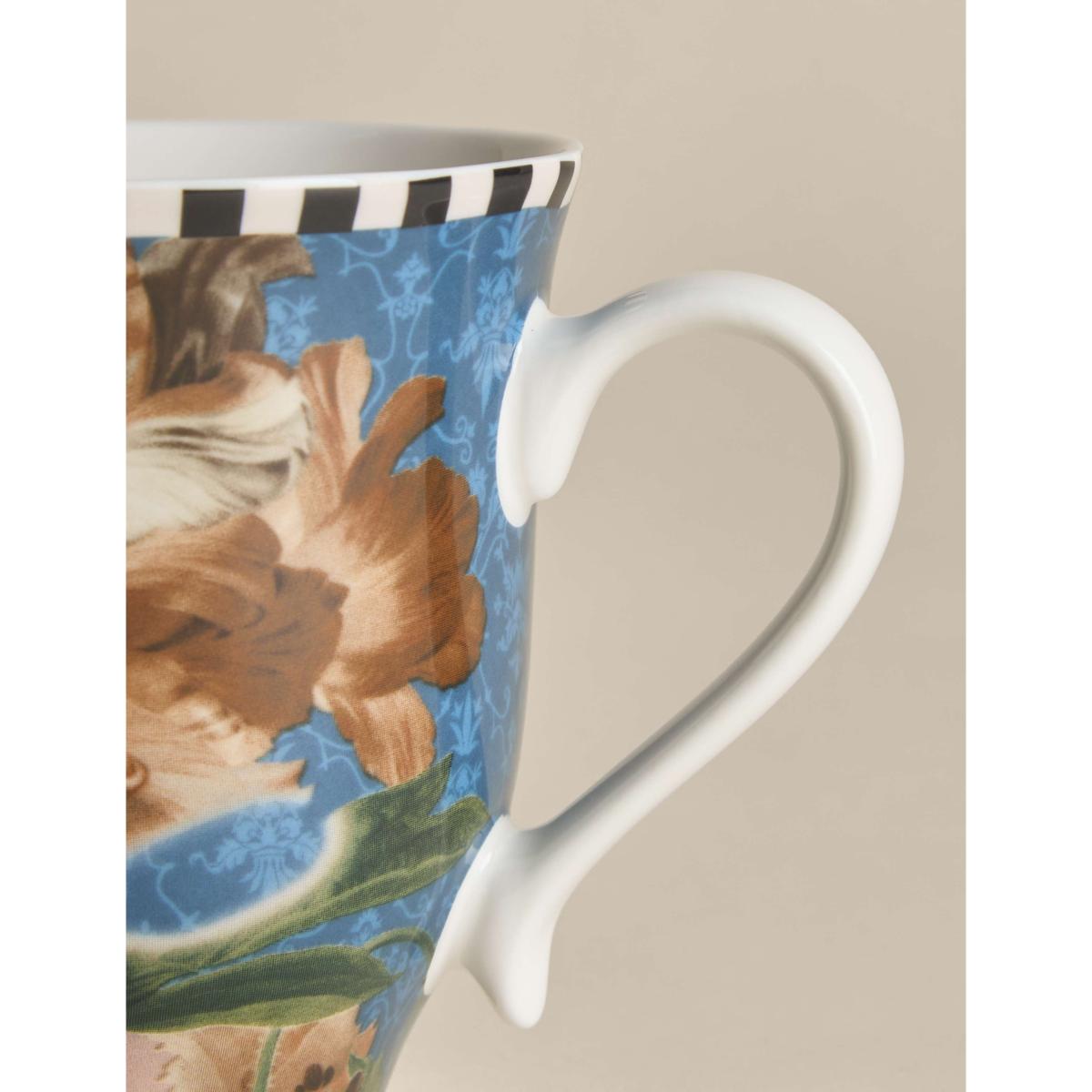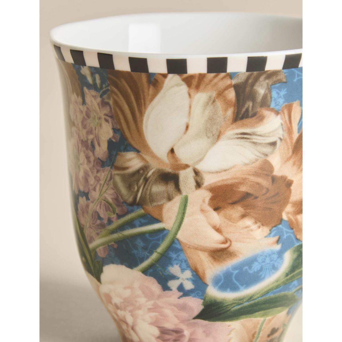 This china mug from the M&S X National Gallery collection is inspired by the museum's works of art. The beautiful design features elegant blooms and a contrast chequerboard pattern around the rim. It's dishwasher safe for easy care.