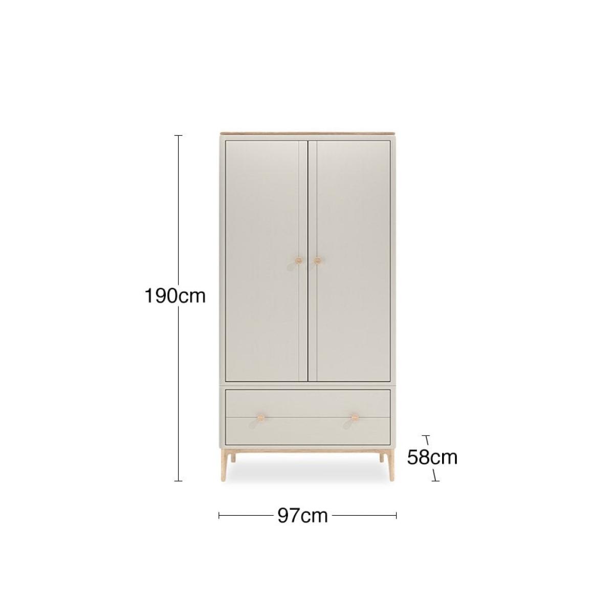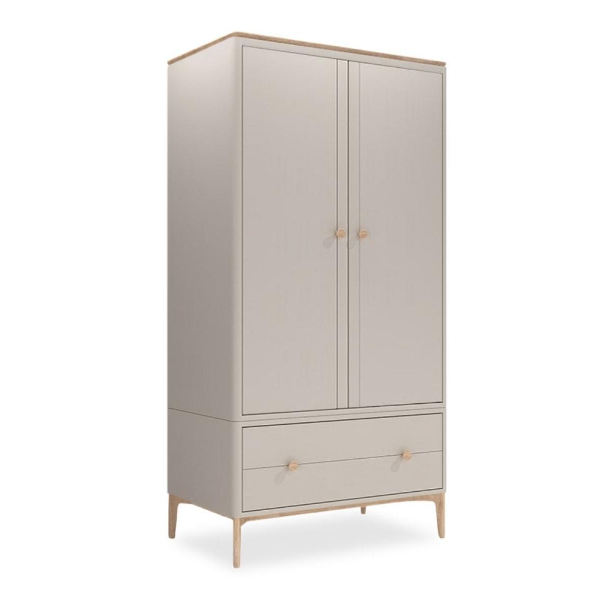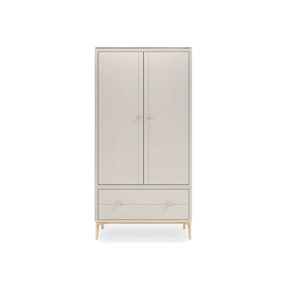 With its natural light oak wood and taupe-painted finish, the Mabel Wooden Wardrobe brings Scandinavian style into your home. Designed by the award-winning British furniture designer Tim Fenby this wardrobe is a classic with a clean and airy style in a light taupe hue. With two doors revealing a spacious alcove for clothes and two drawers beneath for smaller items. View The Mabel Range