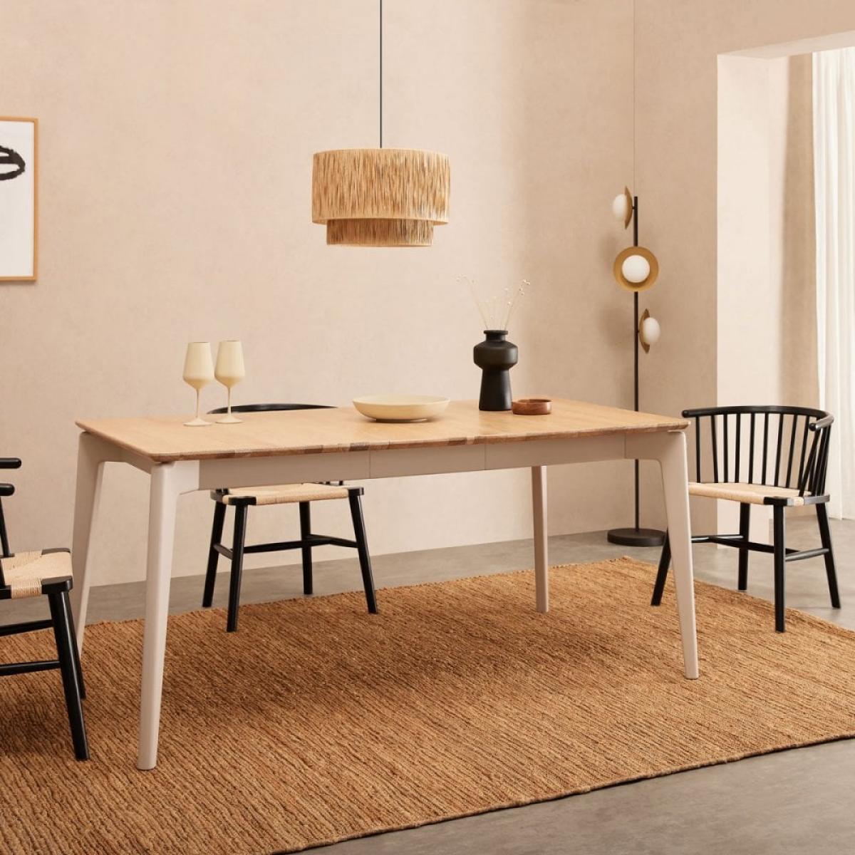I really like the Mabel table for its versatility and contemporary appeal. Its light oak top paired with taupe legs makes it a neutral yet warm focal piece that can easily blend into both modern and Scandi-inspired interiors. The extendable feature makes it practical for day-to-day living, comfortably seating four but easily accommodating six when needed, which is perfect for hosting dinners or family gatherings. For styling, I’d recommend pairing it with minimalist or textured upholstered chairs to emphasise its modern vibe, and using a statement light or centrepiece to define the dining zone. Overall, it’s a well-balanced piece that combines function with a sleek, understated aesthetic.
