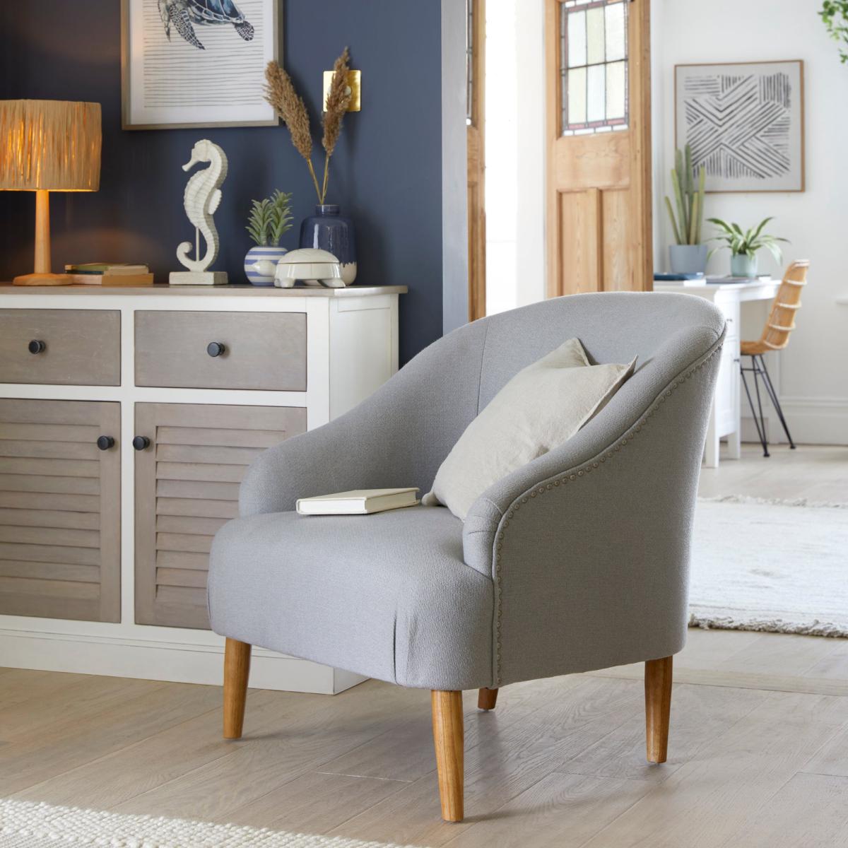 I love this little armchair for its versatile style and cosy appeal. The grey faux wool fabric makes it a practical choice that pairs well with both modern and traditional interiors. It’s perfect for adding a touch of comfort in a living room or even a reading nook. For styling, consider placing it next to a neutral-toned sofa or complementing it with colourful cushions and textured throws to create an inviting space. Its compact size makes it ideal for smaller rooms or to serve as an accent piece in a larger scheme, adding both character and function.