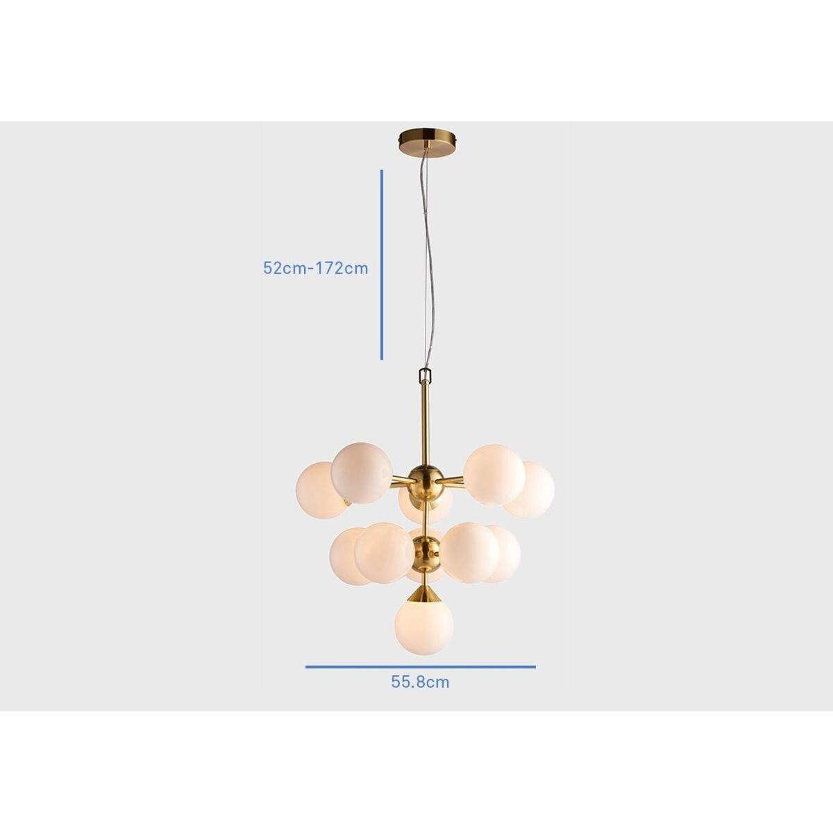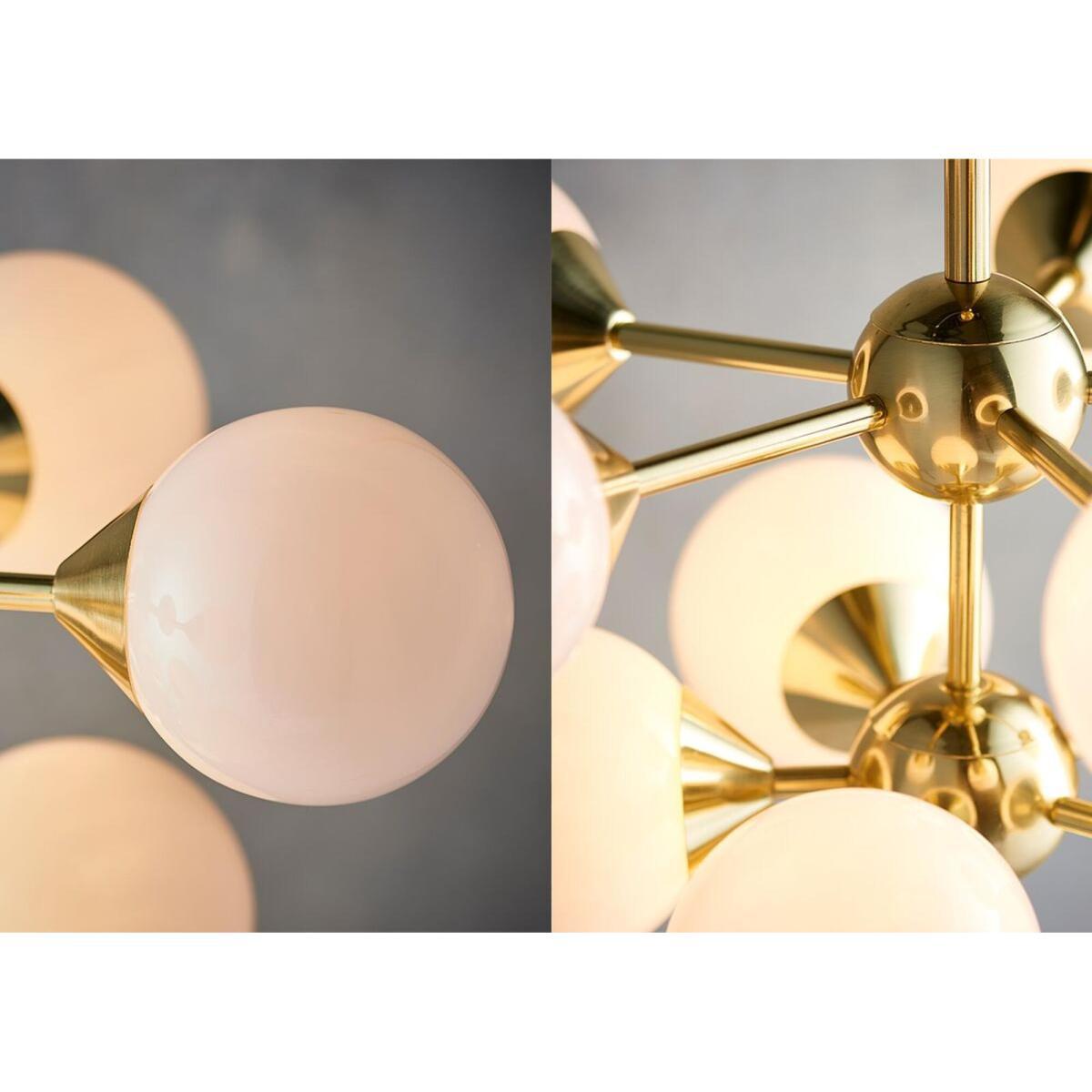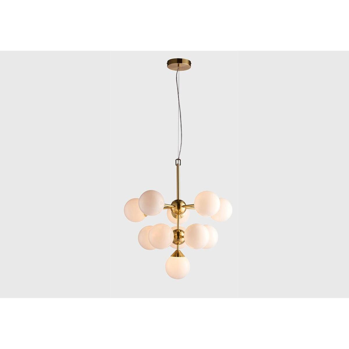Make your interior pop with the eye-catching Mabel ceiling pendant. This extravagant pendant design teams a lavish golden metal body with glossy white glass balloons for an eye-catching look that is perfect for interiors in need of some spice. The Mabel, also available in gold and a variety of sizes, will fit right into eclectic decors, giving a glam glow to your favourite accents, upholstery and textiles.