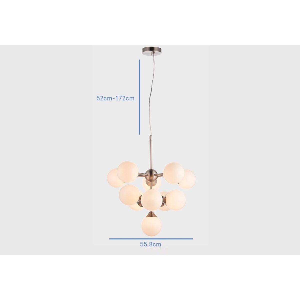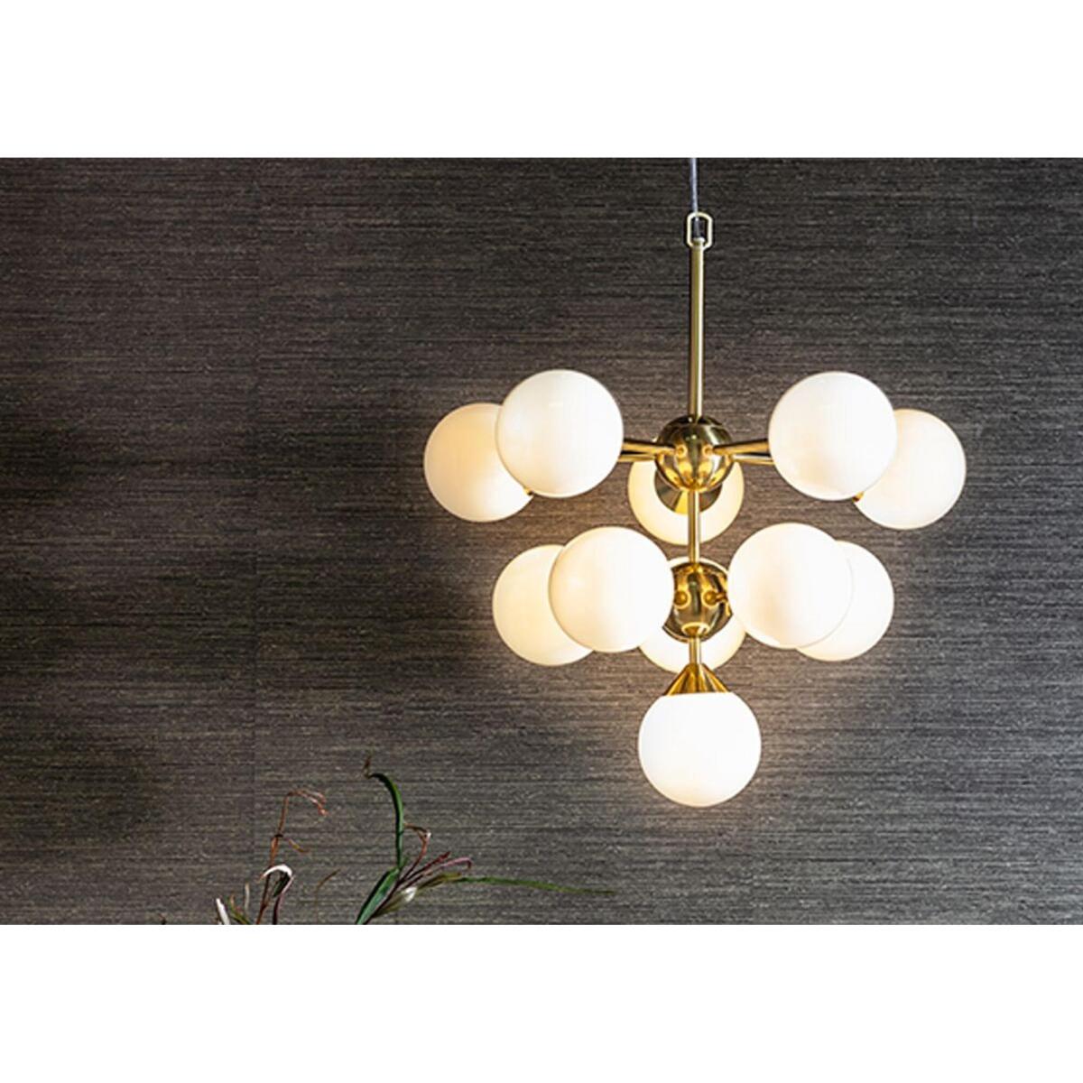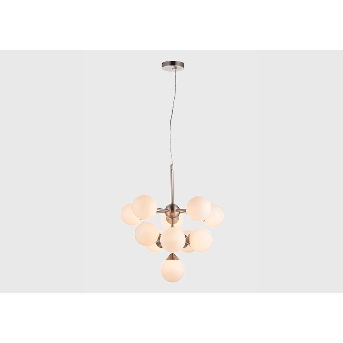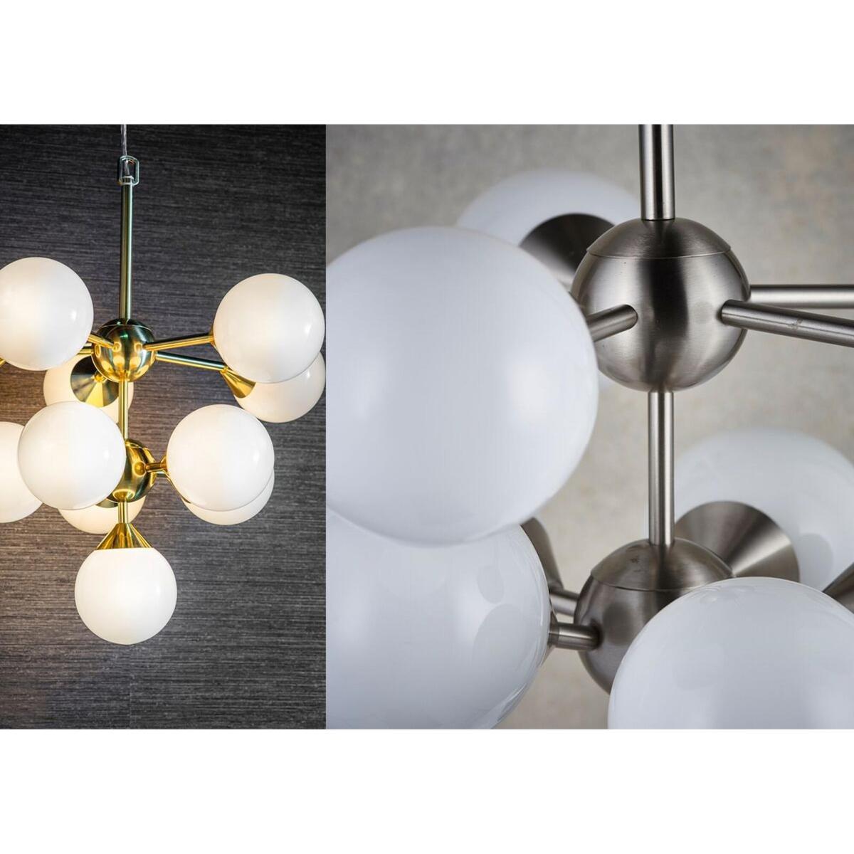 Make your interior pop with the eye-catching Mabel ceiling pendant. This extravagant pendant design teams a cool silver metal body with glossy white glass balloons for an eye-catching look that is perfect for interiors in need of some spice. The Mabel, also available in gold and a variety of sizes, will fit right into eclectic decors, giving a glam glow to your favourite accents, upholstery and textiles.