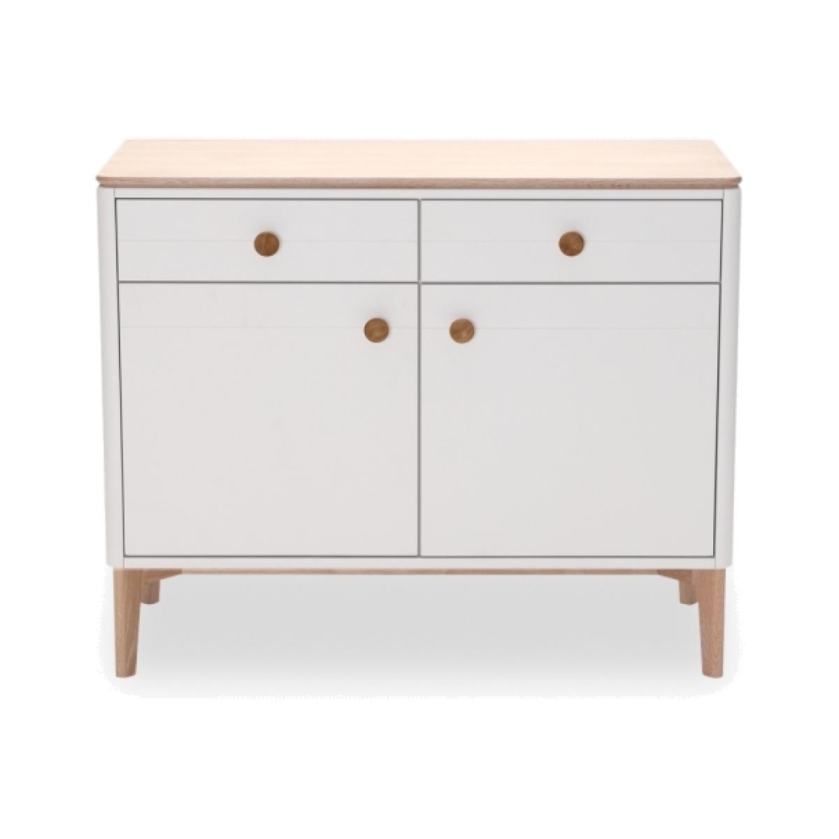 Set deep in its Scandinavian roots and designed by the award-winning British furniture designer Tim Fenby, the Mabel sideboard boasts a natural oak wood that adds rustic charm to your living space. With 4 storage compartments in a light taupe, complemented with stunning oak handles, keep all that clutter behind closed drawers for a clean Nordic design. The Mabel sideboard is the epitome of Tim Fenby's design style; simple, balanced, and well-considered furniture to the highest stand. Top/Leg Material:Oak Wood Additional Features: 2 Doors, 2 Drawers Assembly: No Assembly Required Care: Wipe with a cloth Dimensions Total Size: H 79 x W 99 x D 45cm. Buy your Mabel Sideboard, Oak from a wide range of Furniture