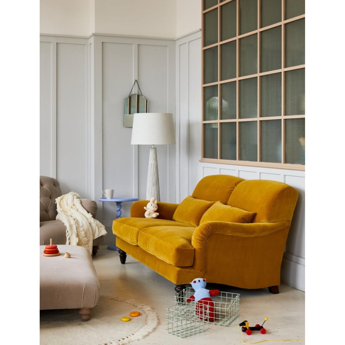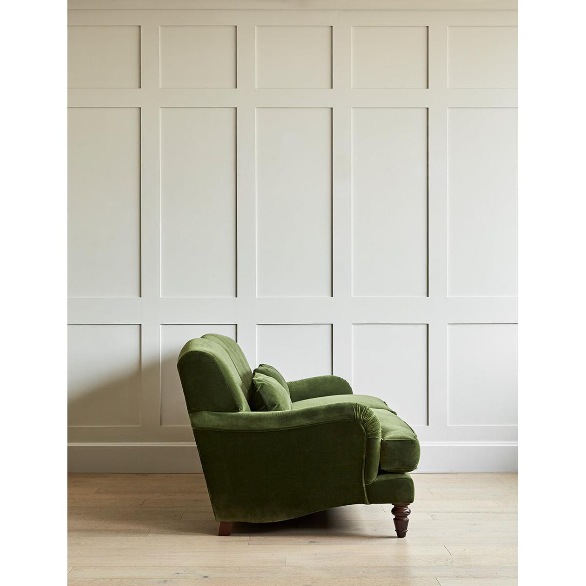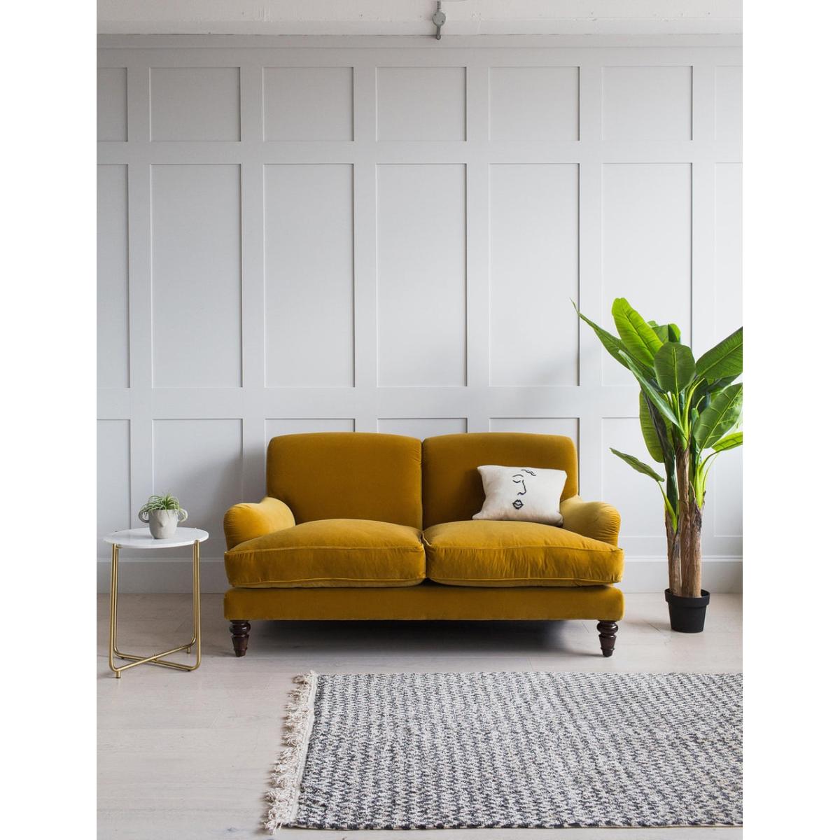 If you’re the type of person who loves to kick off their shoes and lounge on your sofa, meet Mabel. One of our most squishy and comfy sofas, the Mabel offers the ultimate in comfort without compromising on style. Choose from both neutral and vibrant colours, dependent on whether you want a statement sofa or a more classic design. Pair with the matching armchair or mix-and-match with the rest of our Snuggle collection. Photographed here as a Two Seater in Mustard Velvet and Vintage Green Velvet. The leg colour in the photograph image is Dark Mahogany. All other images are computer generated as a colour reference with a Driftwood leg. We recommend you order a free fabric swatch to see your chosen material up close before ordering your sofa, armchair or footstool!