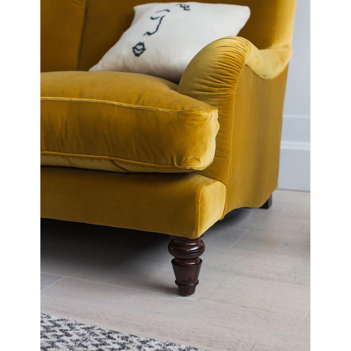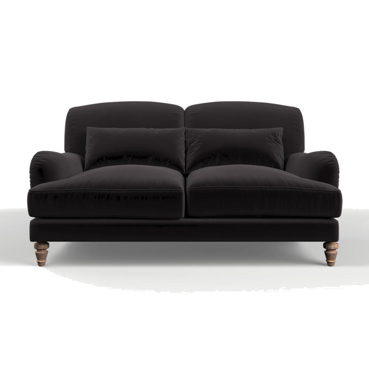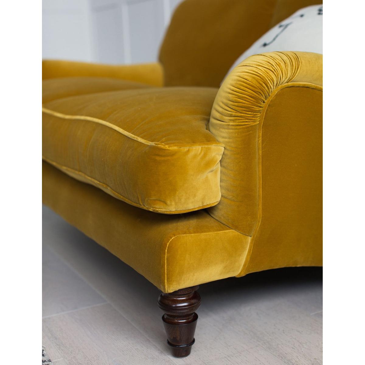 If you’re the type of person who loves to kick off their shoes and lounge on your sofa, meet Mabel. One of our most squishy and comfy sofas, the Mabel offers the ultimate in comfort without compromising on style. Choose from both neutral and vibrant colours, dependent on whether you want a statement sofa or a more classic design. Pair with the matching armchair or mix-and-match with the rest of our Snuggle collection. Photographed here as a Two Seater in Mustard Velvet and Vintage Green Velvet. The leg colour in the photograph image is Dark Mahogany. All other images are computer generated as a colour reference with a Driftwood leg. We recommend you order a free fabric swatch to see your chosen material up close before ordering your sofa, armchair or footstool!